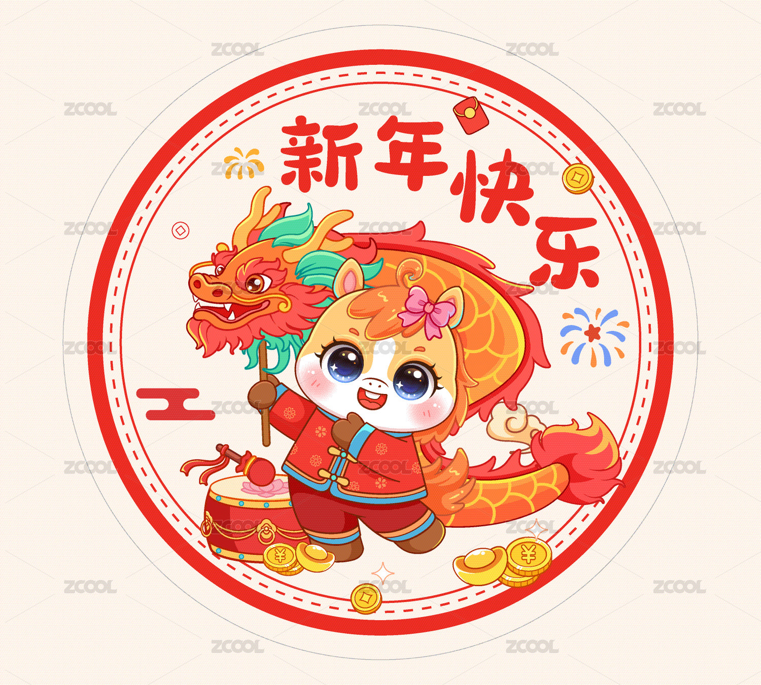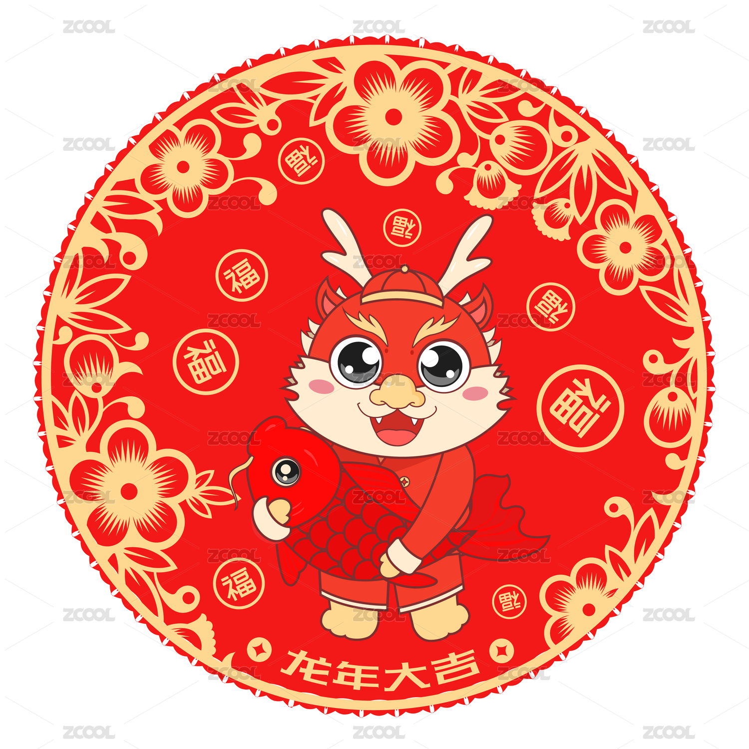 龙年春节窗花插画