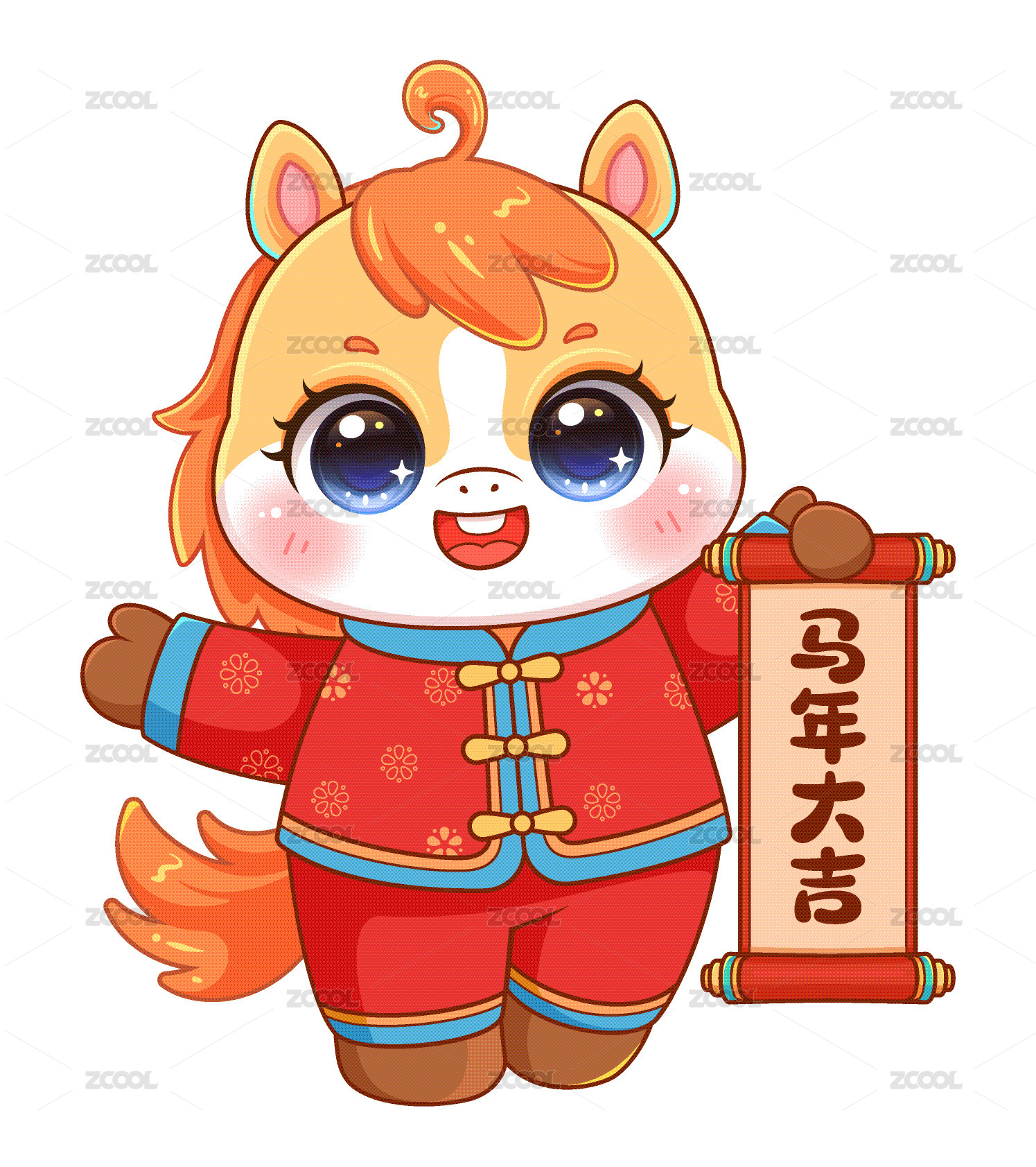 马年喜庆卡通对联设计模板