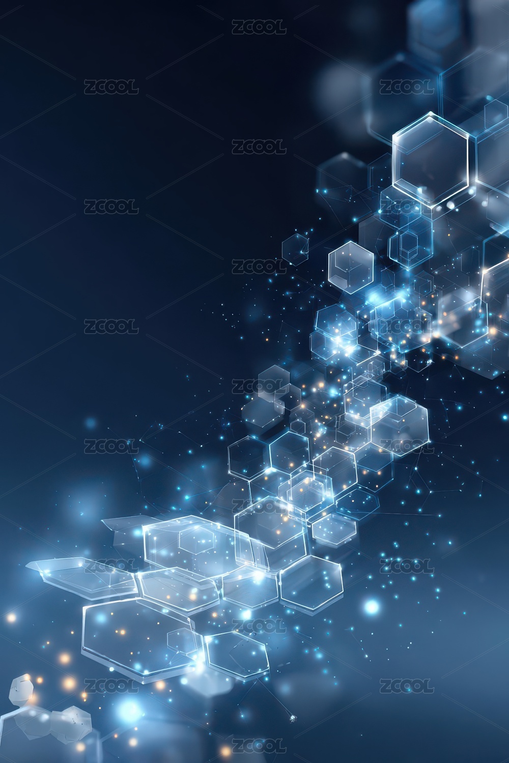 蓝色六边形光点渐变背景
