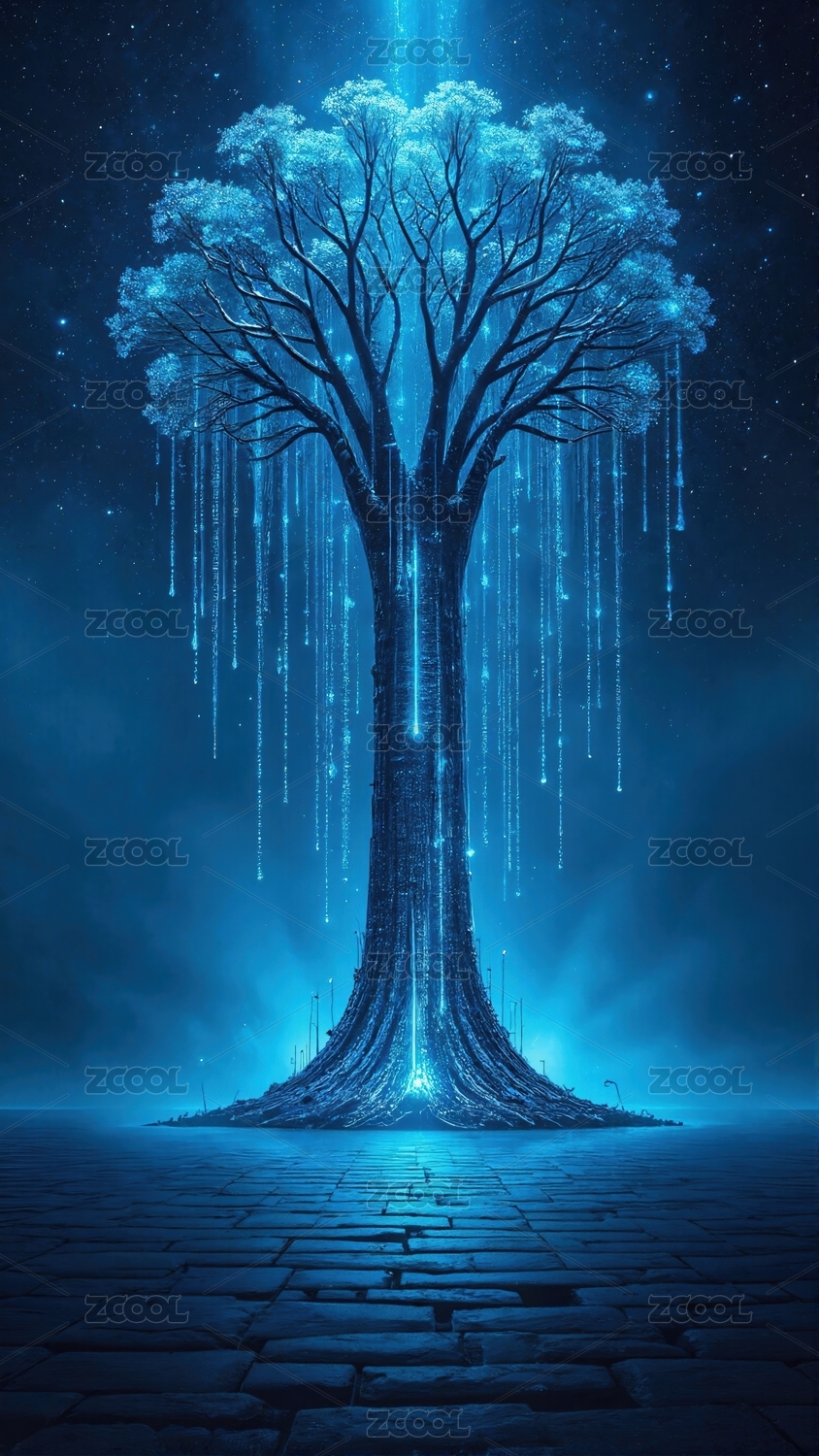 数据树AI数字艺术光影梦幻背景