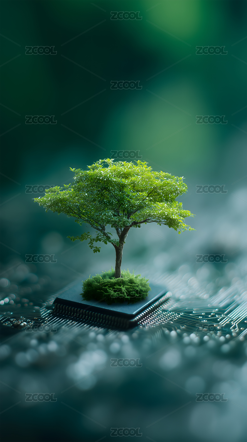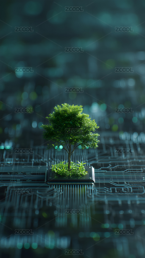 绿色,树木,电路,科技,生长,芯片,连接,和谐,未来,生命