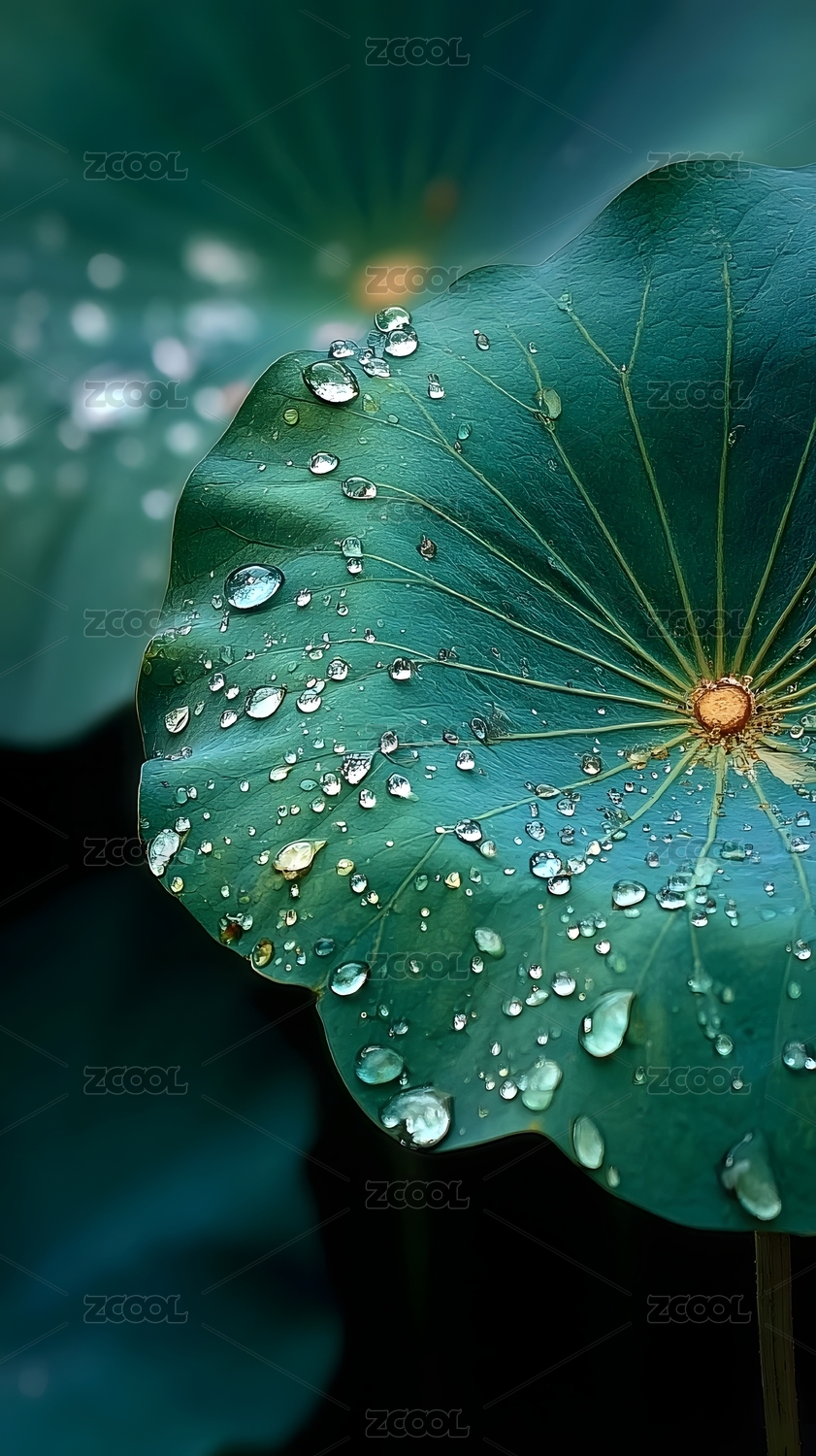 静谧,光影,莲叶,水珠,晶莹,剔透,清新,翠绿,唯美,自然