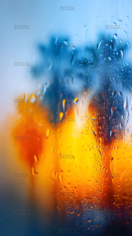 水珠,蓝色,灯光,反光,光晕,温暖,静谧,雨滴,窗户,朦胧