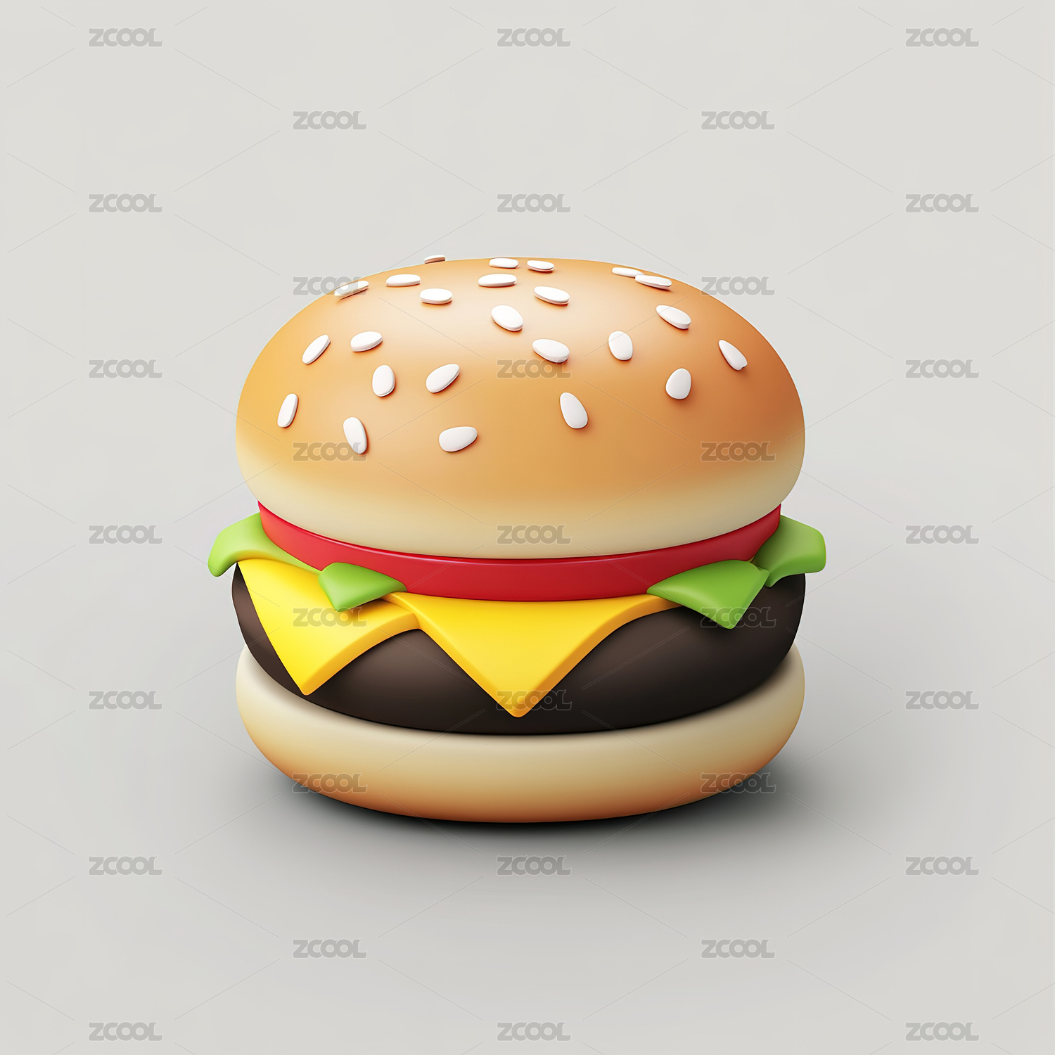 卡通,可爱,立体,逼真,简单,美味,汉堡,食物,面包,番茄