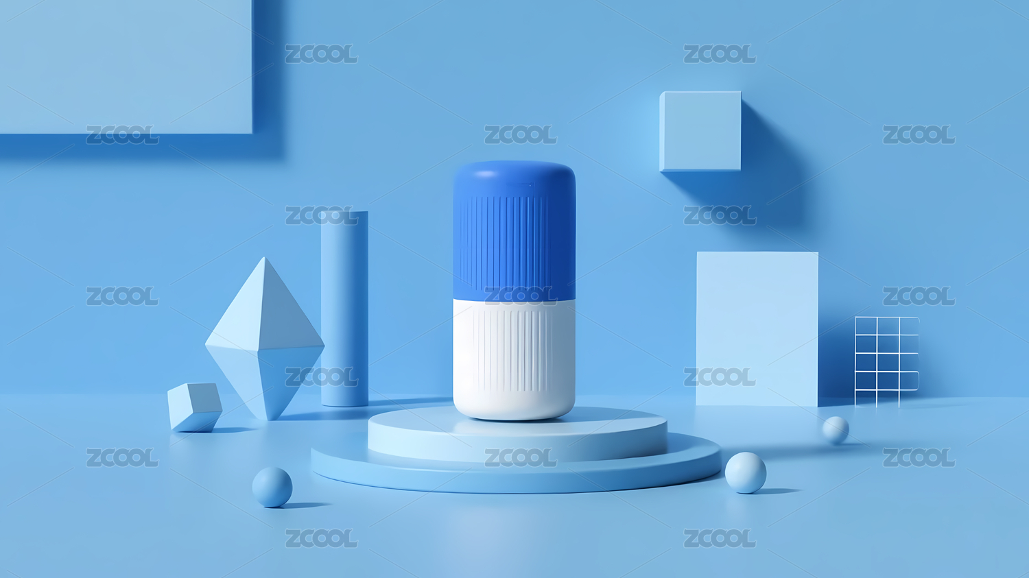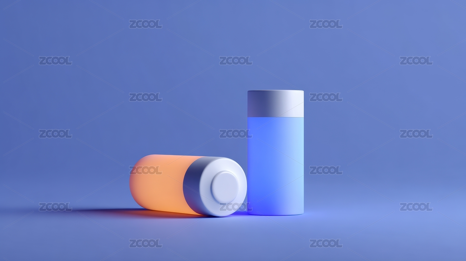 蓝色背景下的白色圆柱形产品