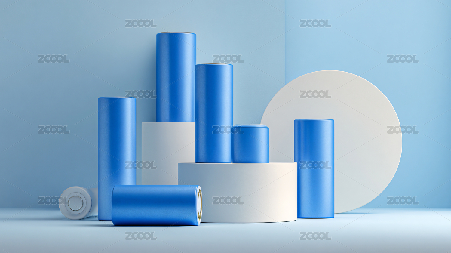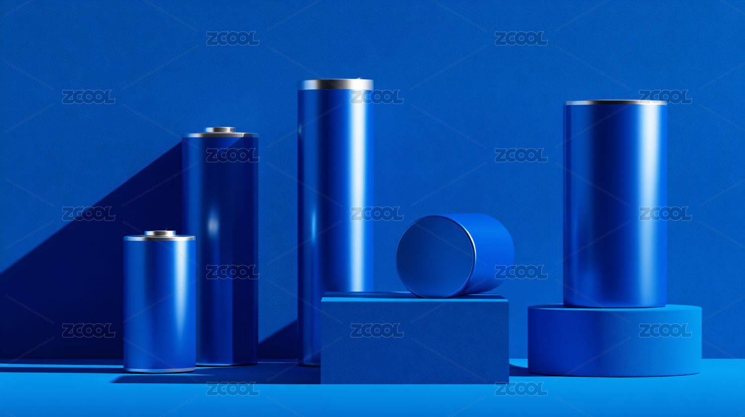 电池,简约,蓝色,圆柱,金属,质感,立体,科技,现代,时尚