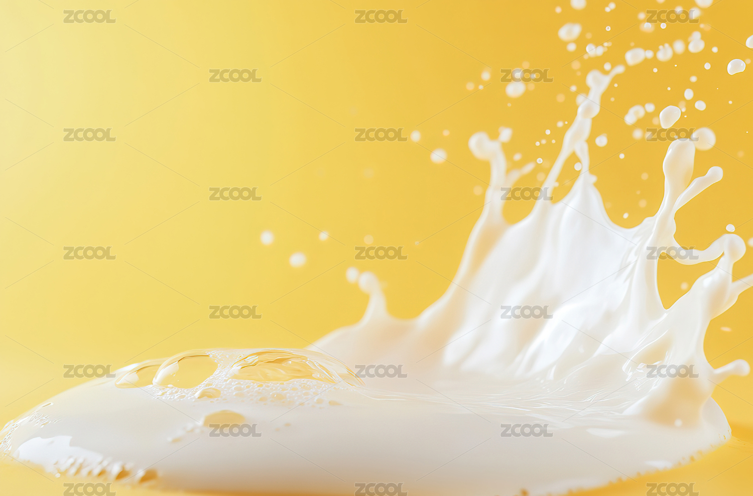 黄色背景下溅起牛奶的特写镜头