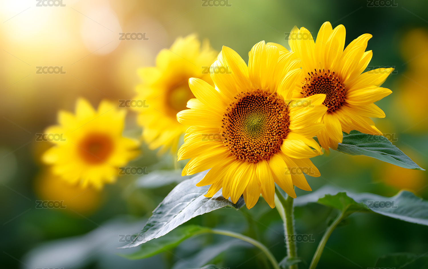 清晨阳光下盛开的向日葵花田