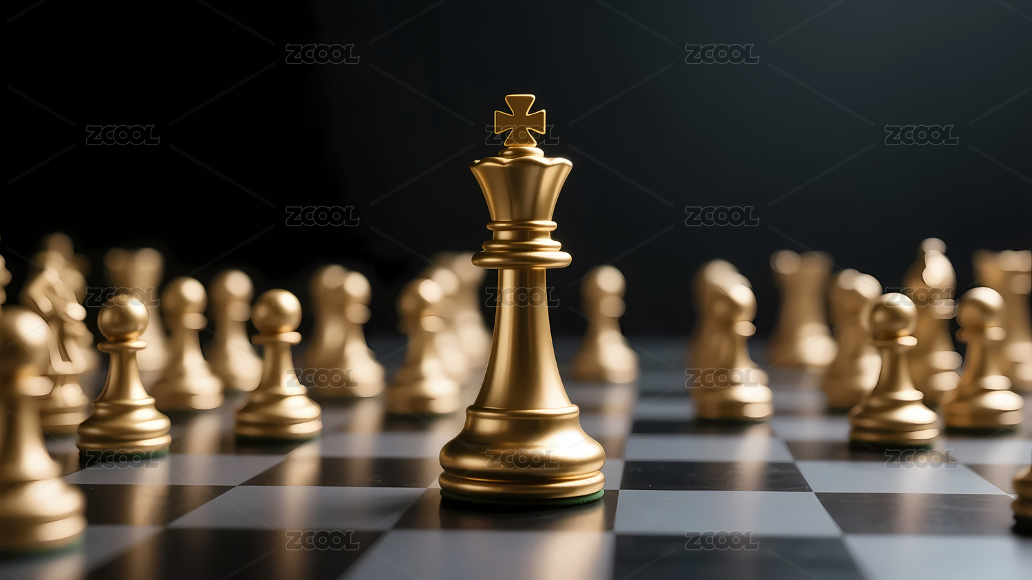 国际象棋棋子和棋盘,金融贸易策略博弈概念