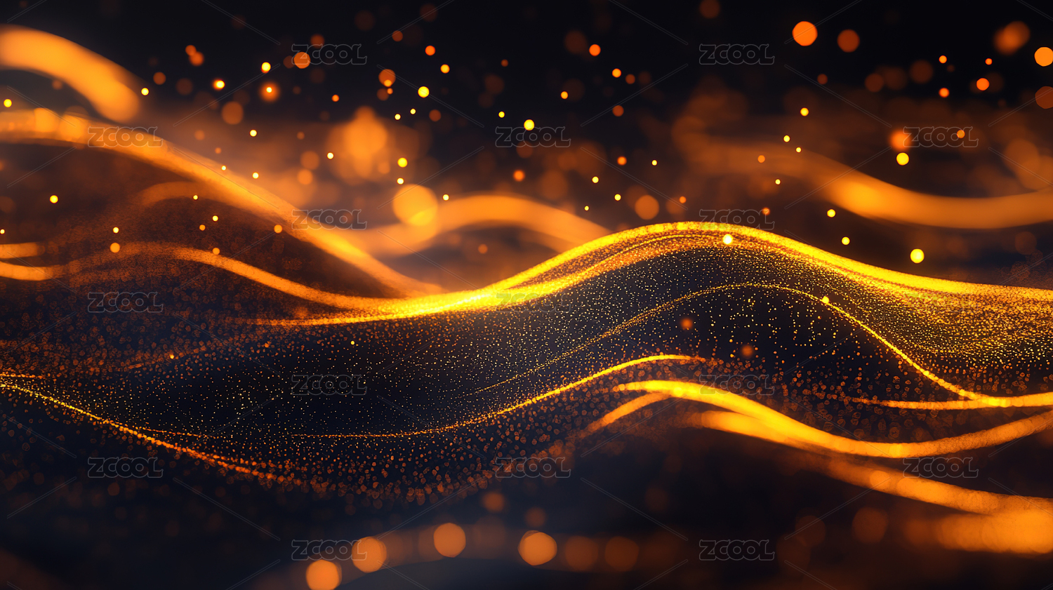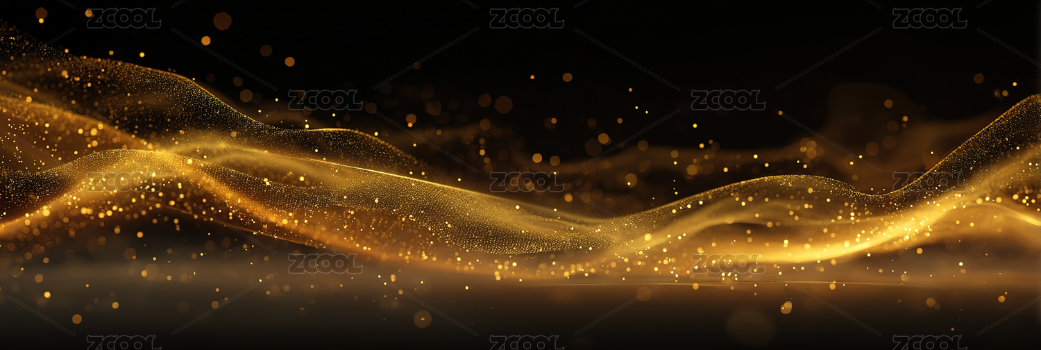 金色波浪与闪烁粒子的抽象背景