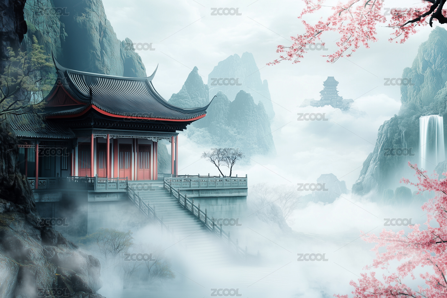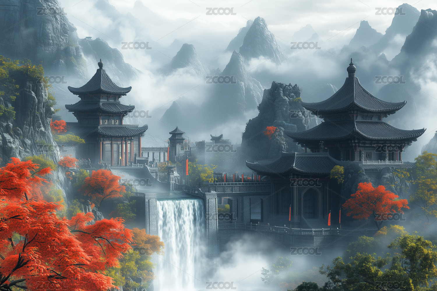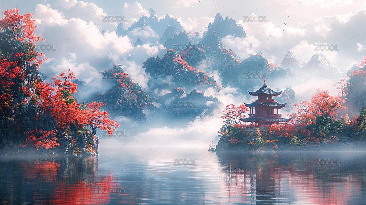 红韵,仙阁,国风,奇幻,艺术,创意,色彩,视觉,冲击,个性