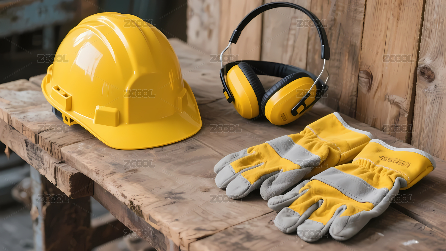 黄色安全帽与手套