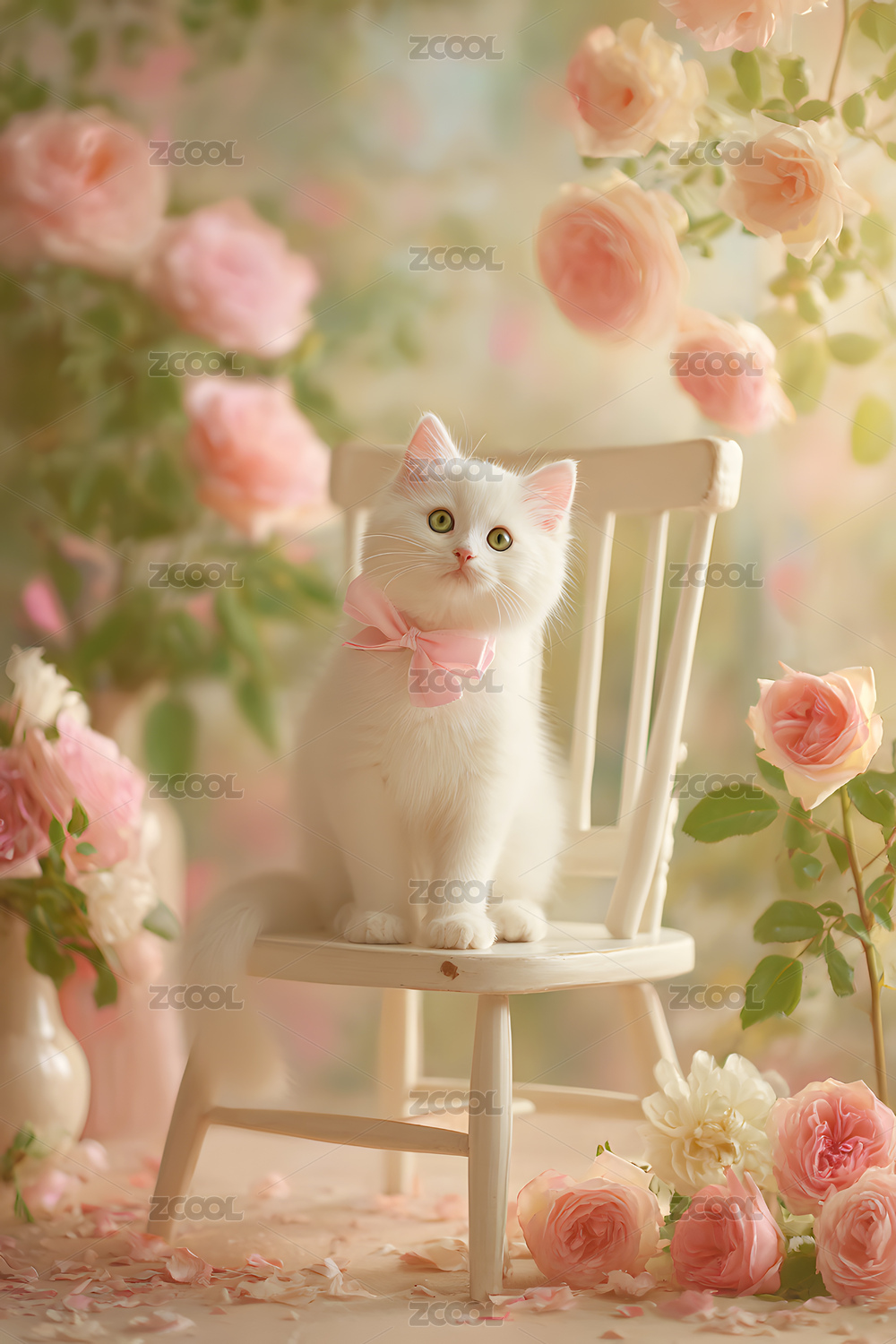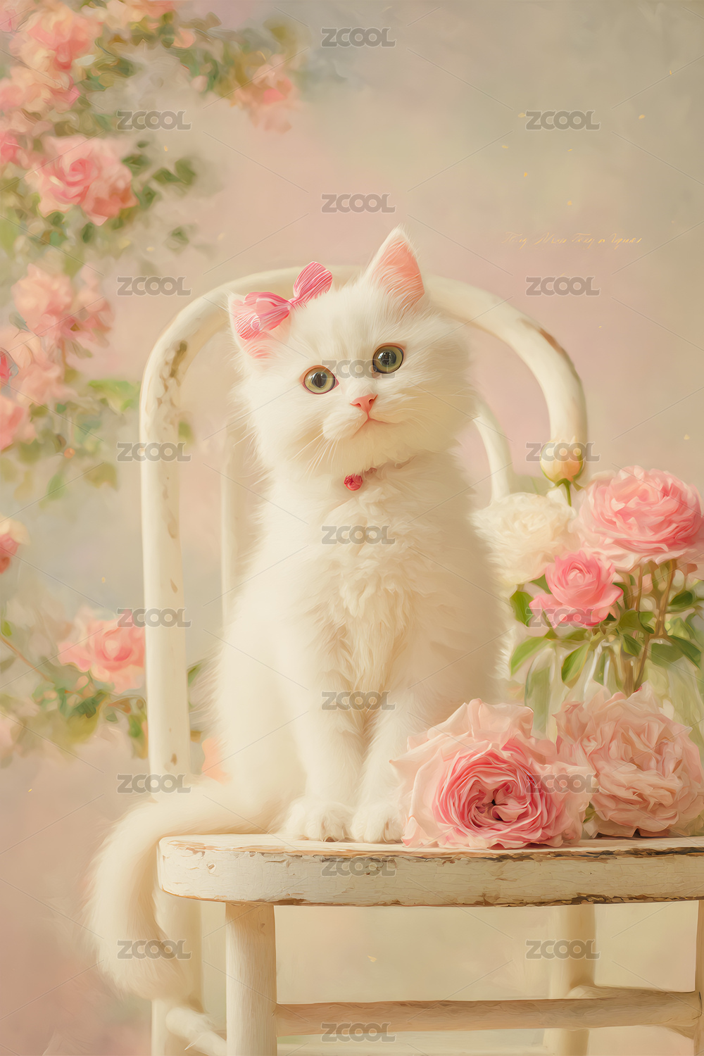 粉韵,喵影,香茗,浪漫,满室,梦轻盈,猫咪,白色,可爱,粉色