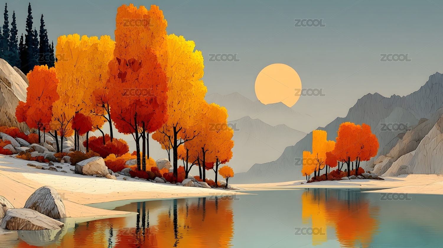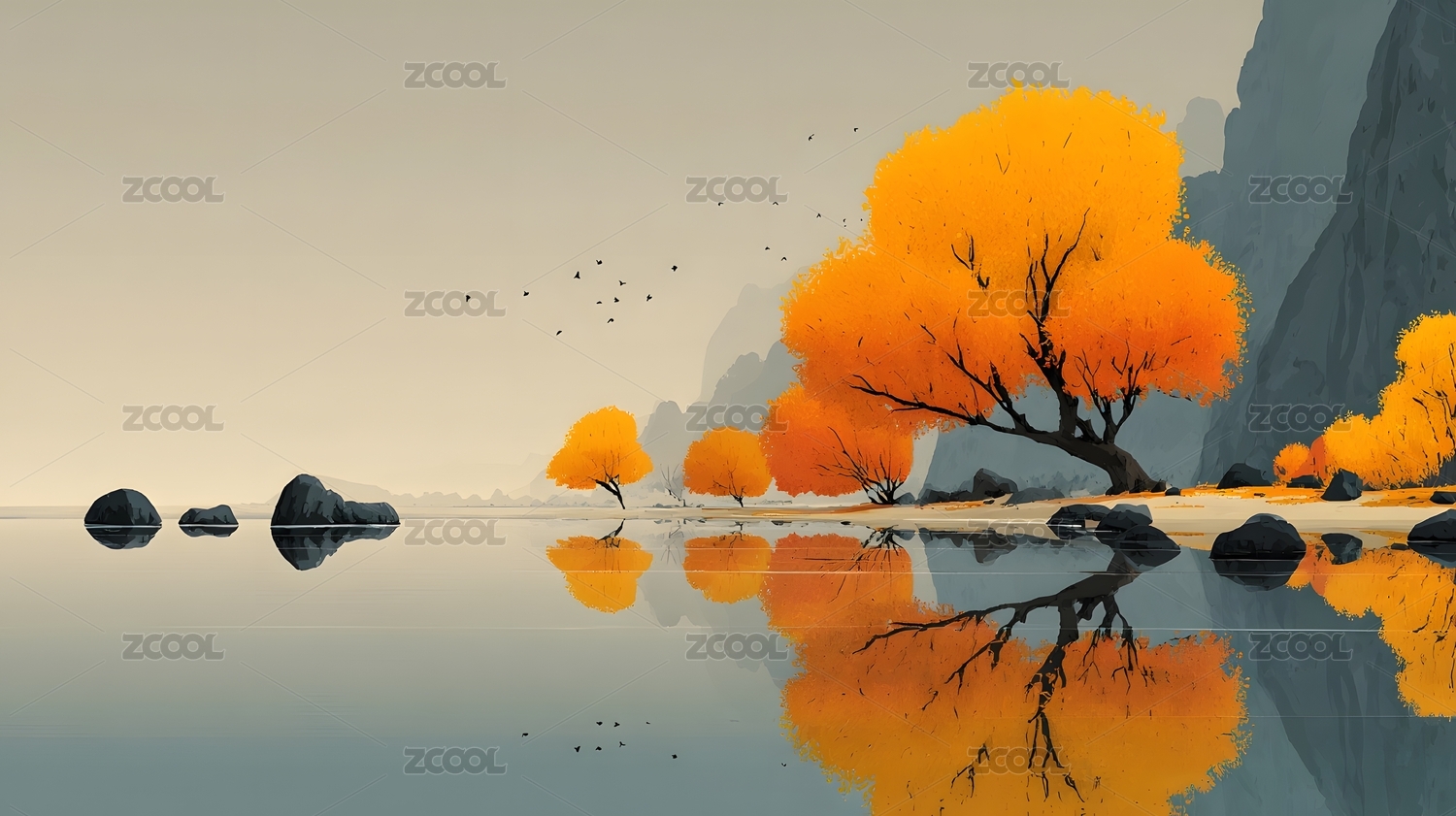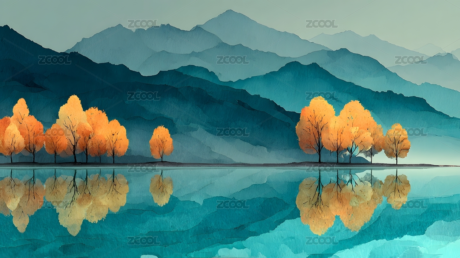 山峦,树木,远山,自然,风景,山脉,湖泊,倒影,静谧,水面