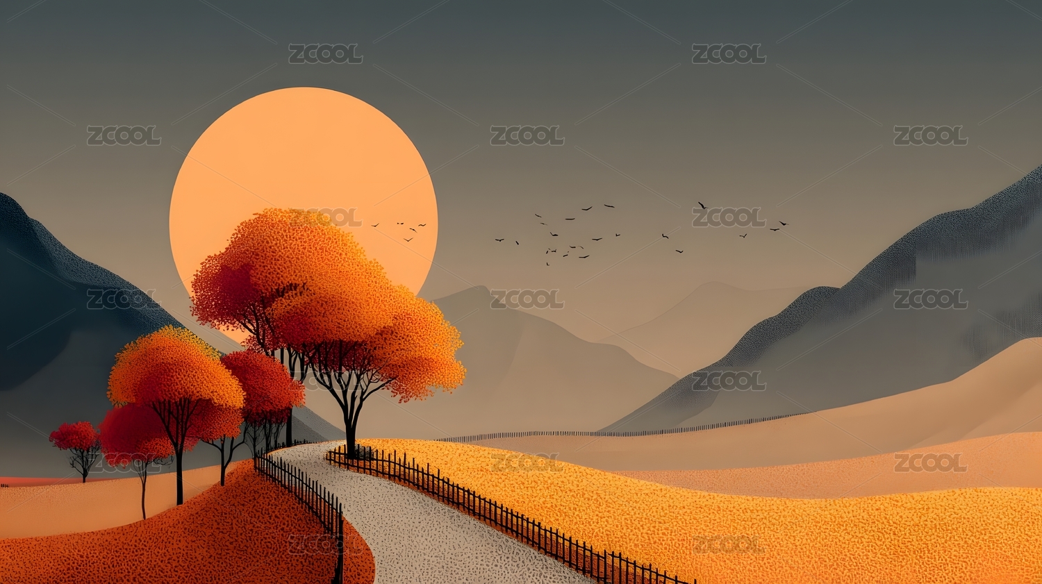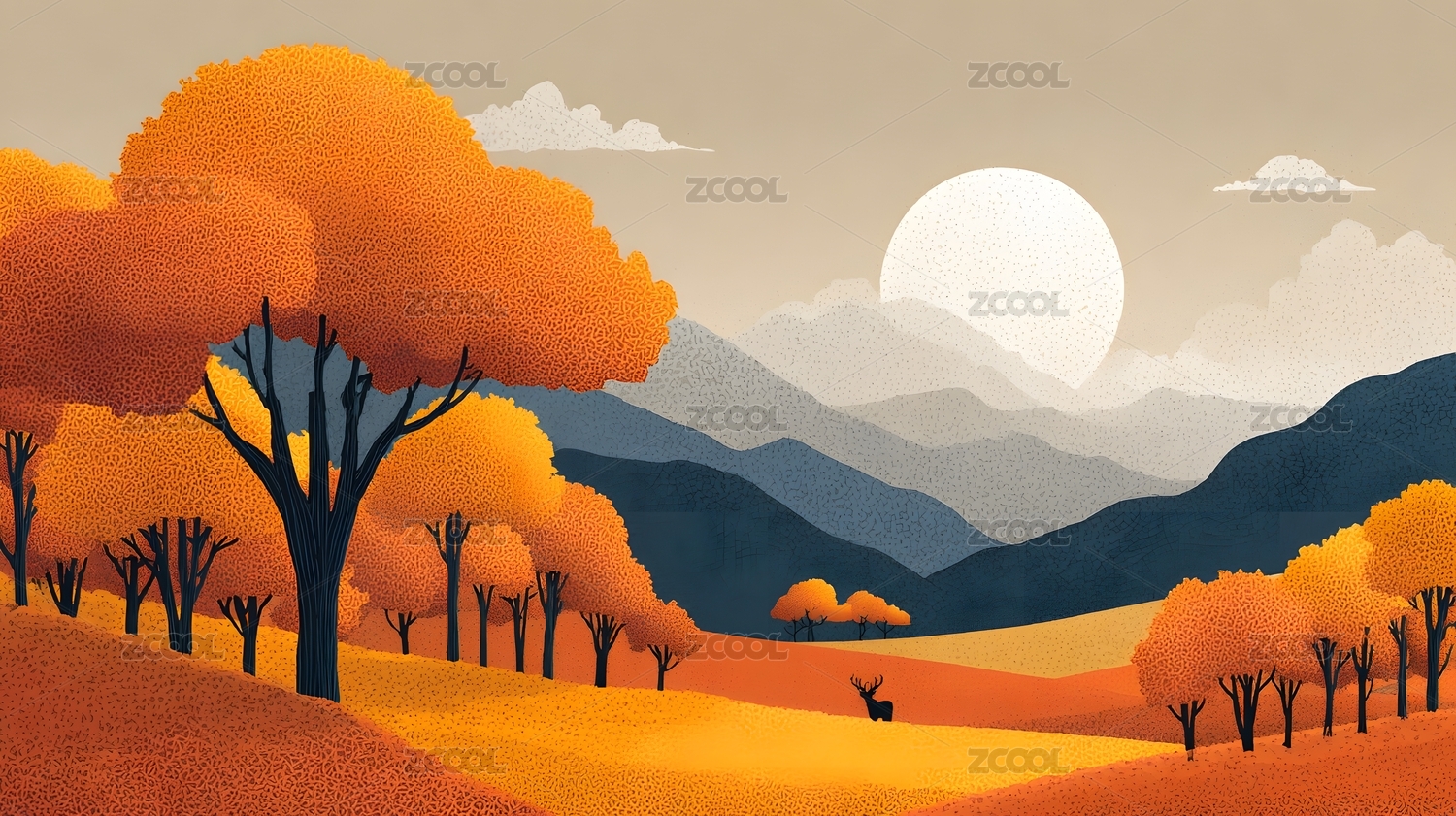 树木,远山,自然,风景,景色,秋天,植物,阳光,草地,山丘