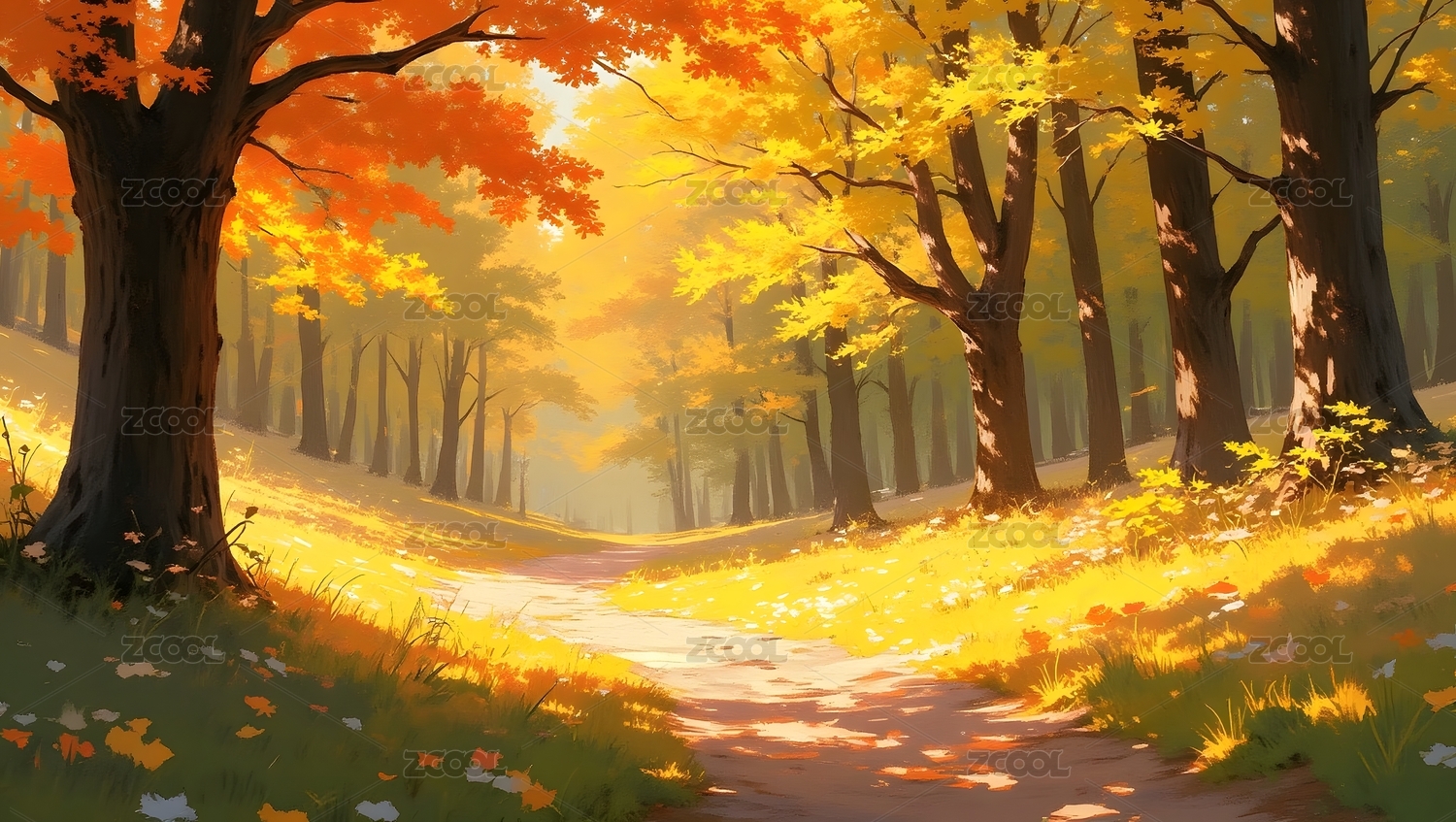 秋日森林小路风景画