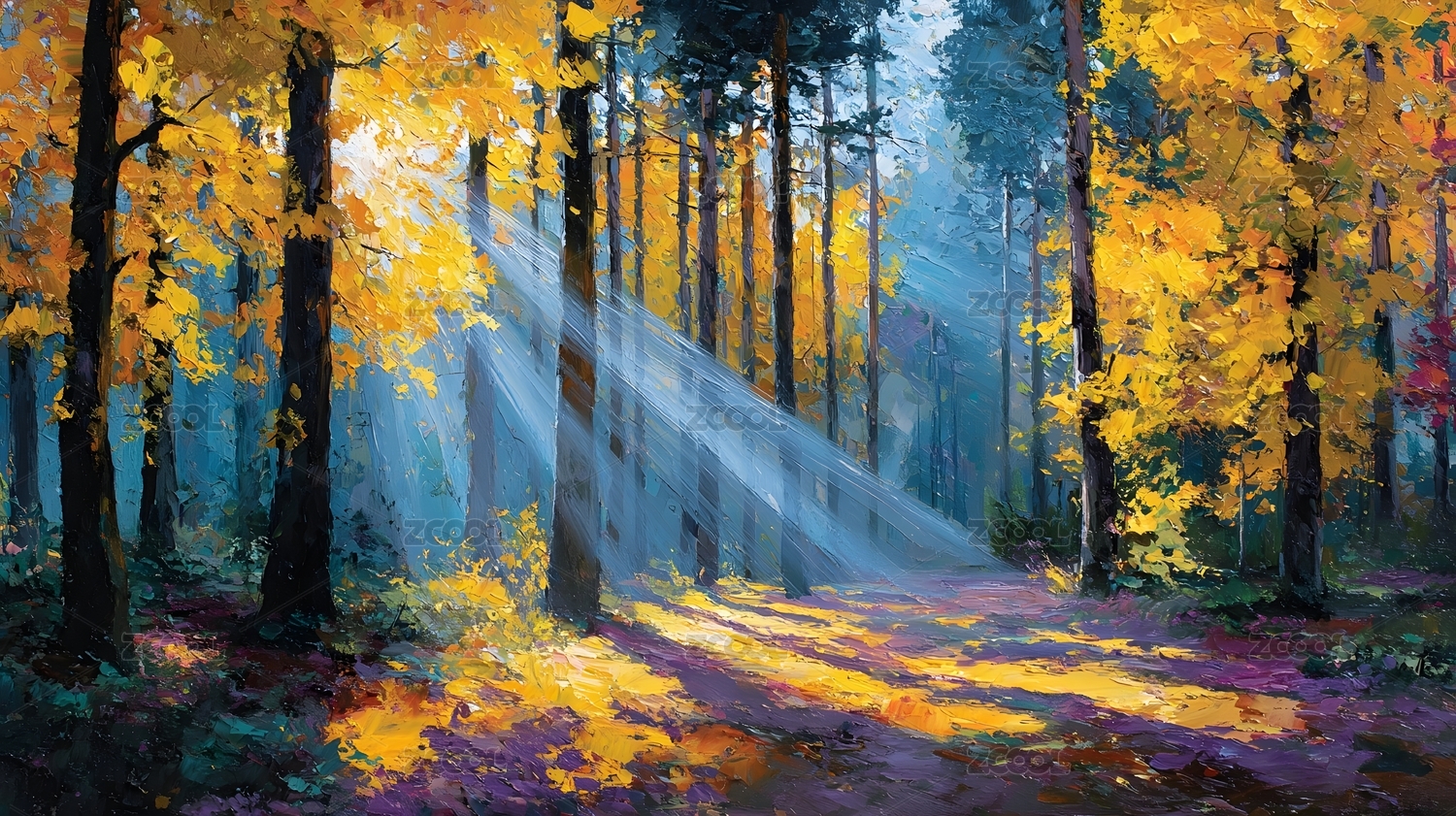 秋日森林油画风景