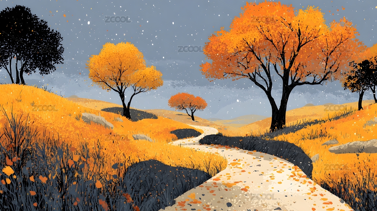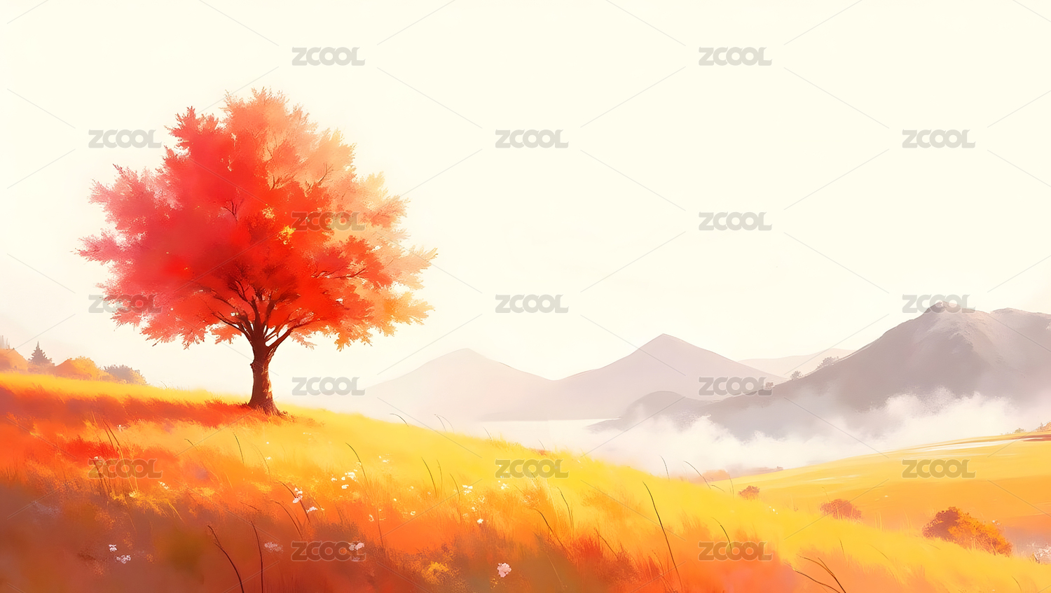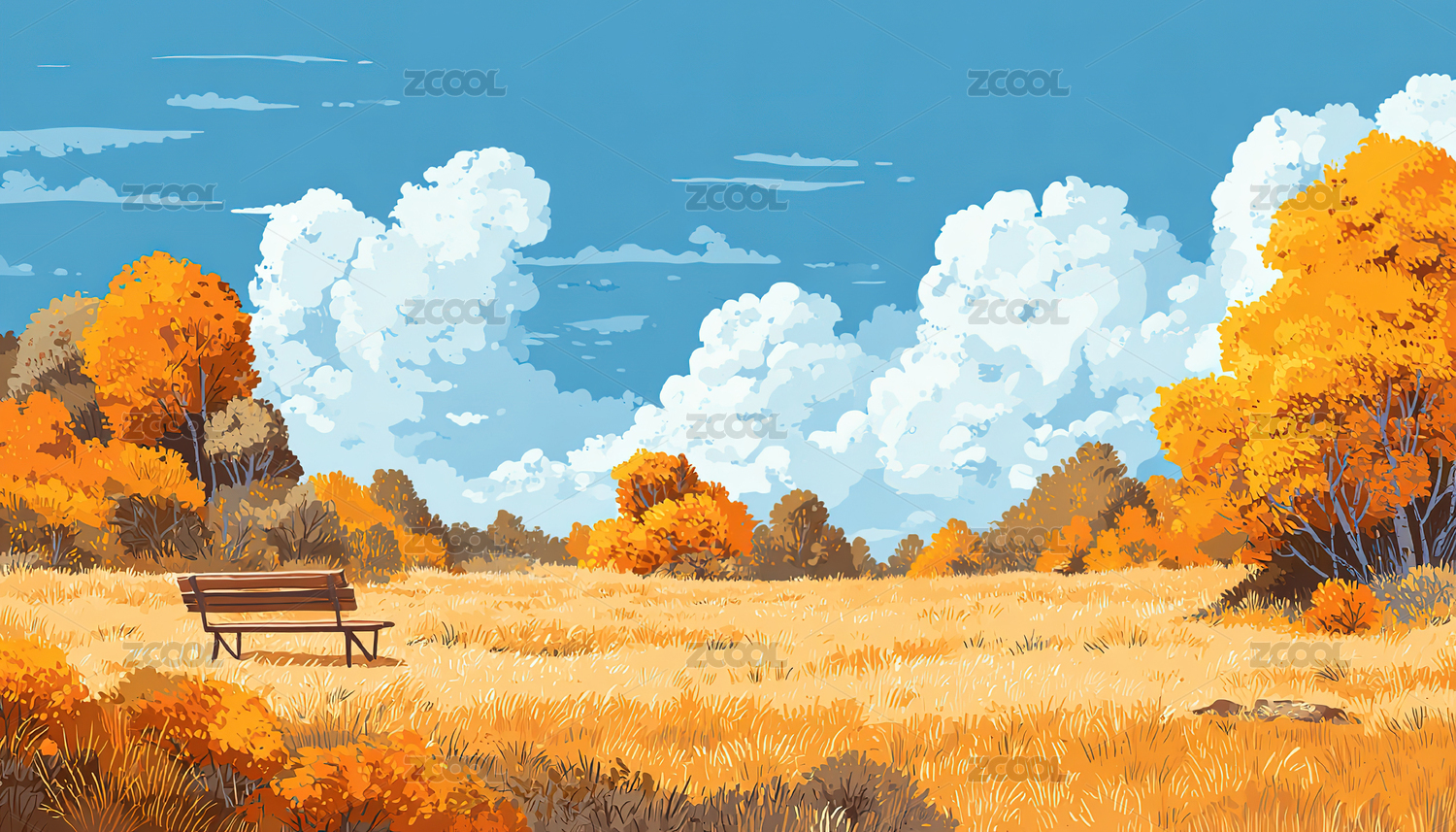 立秋节气户外旅行自然风景处暑卡通唯美插画