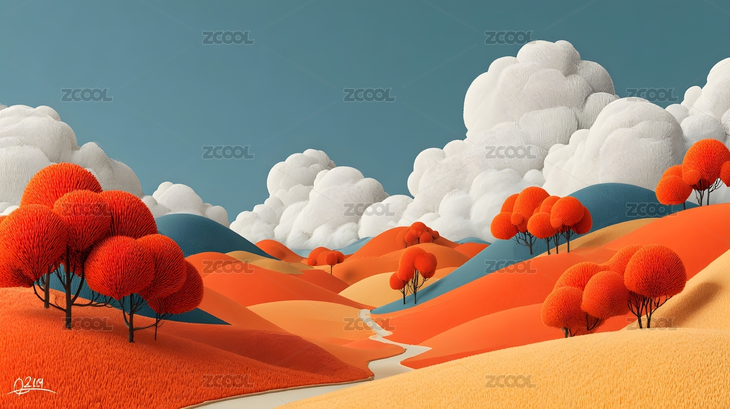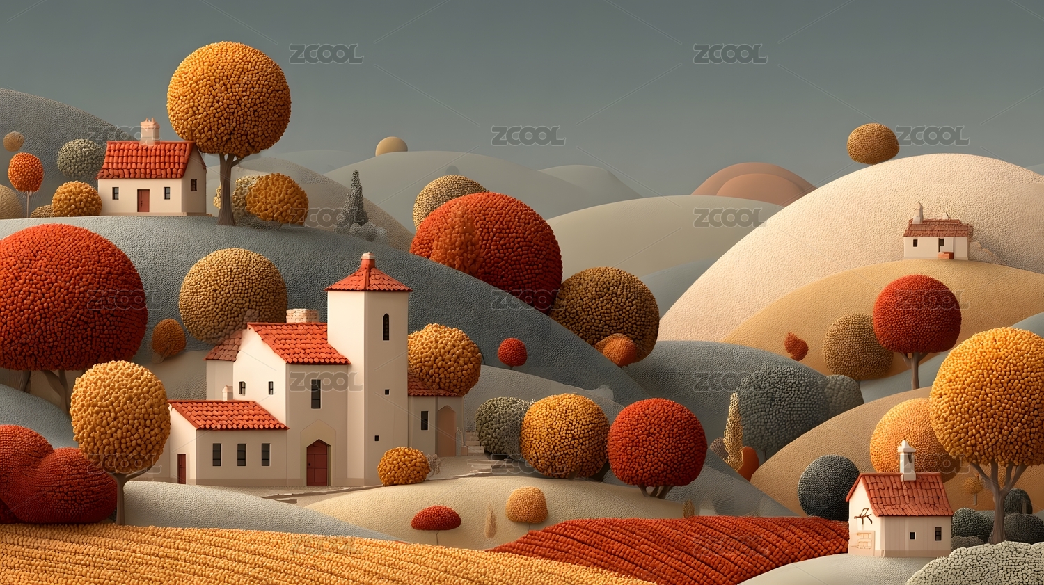树木,远山,自然,风景,山脉,秋天,草地,山丘,天空,柔和