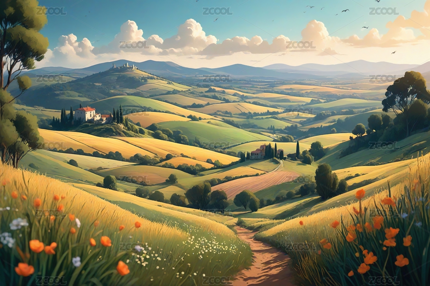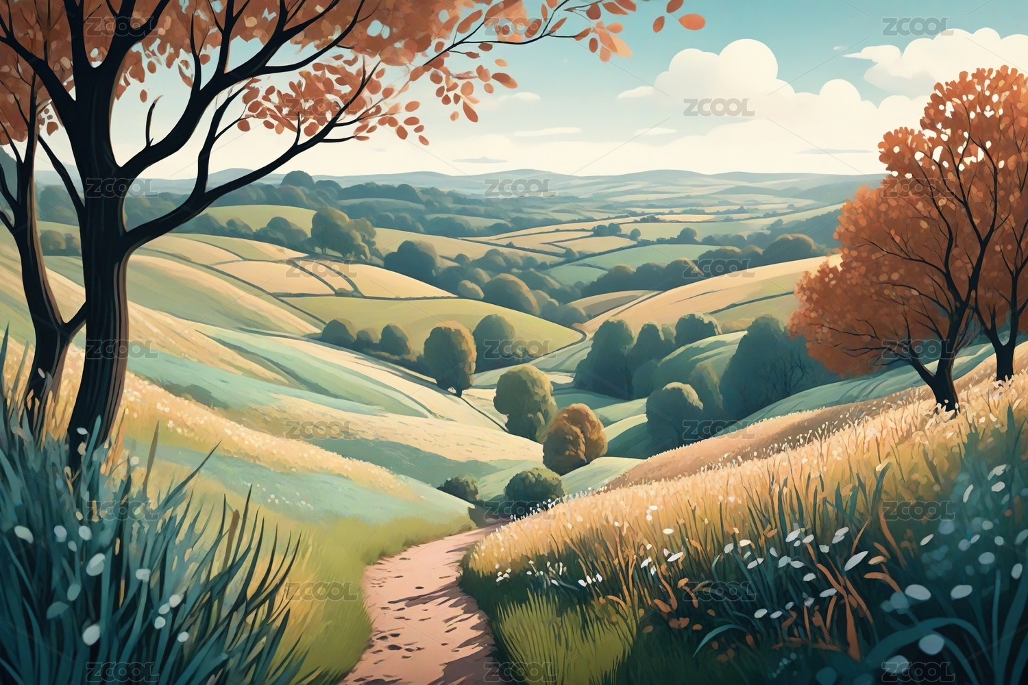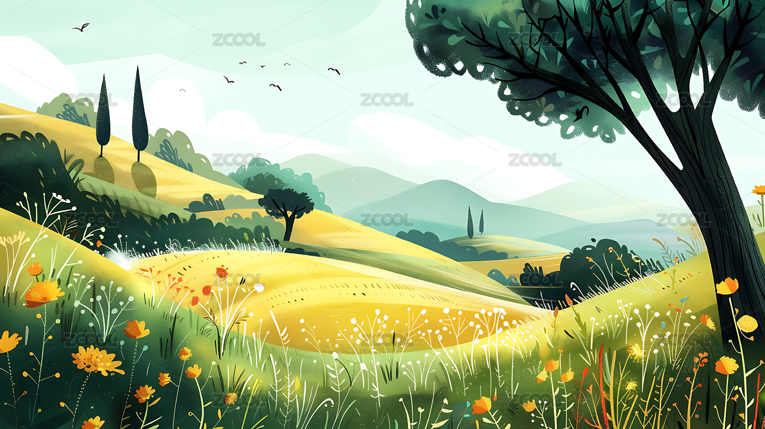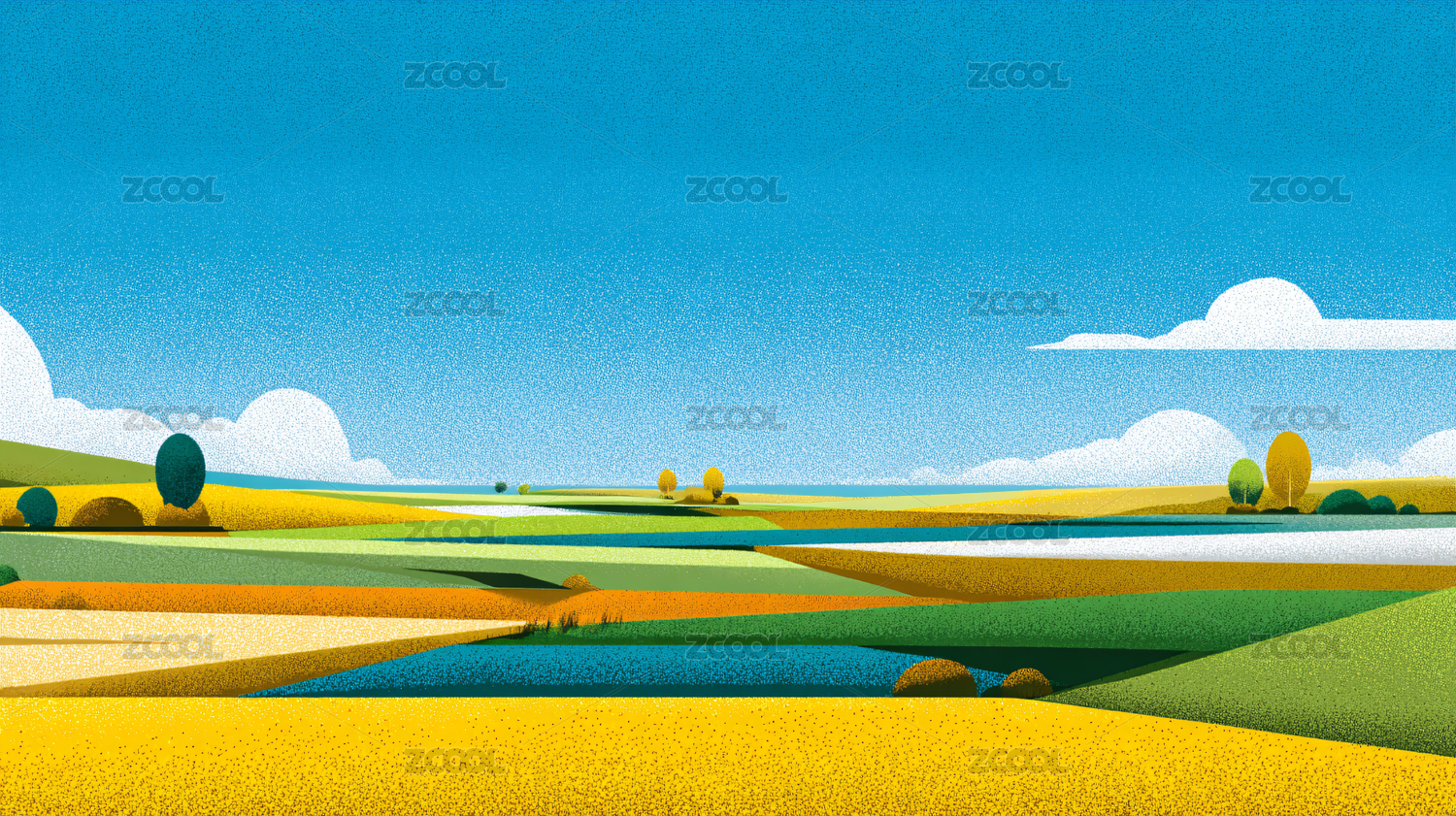 田园风光插画背景图