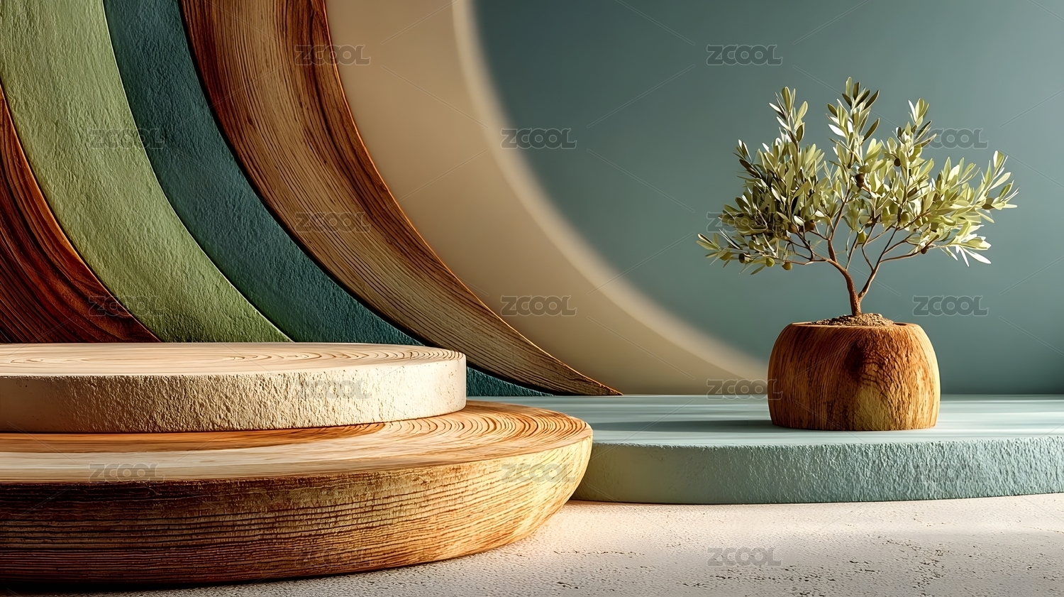 展台,植物,装饰,现代,空间,阳光,绿色,圆形,纹理,影子