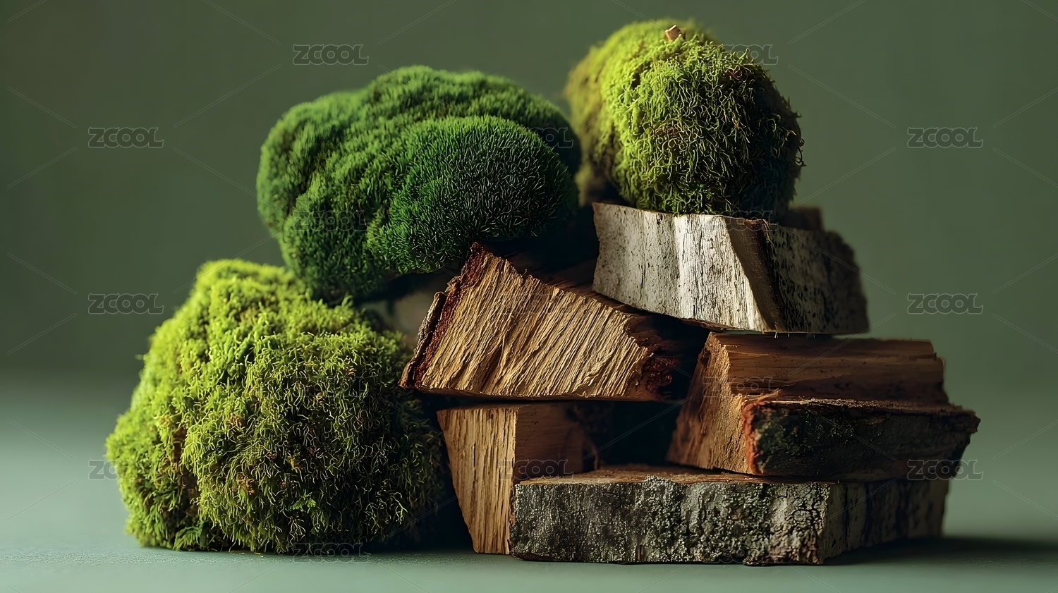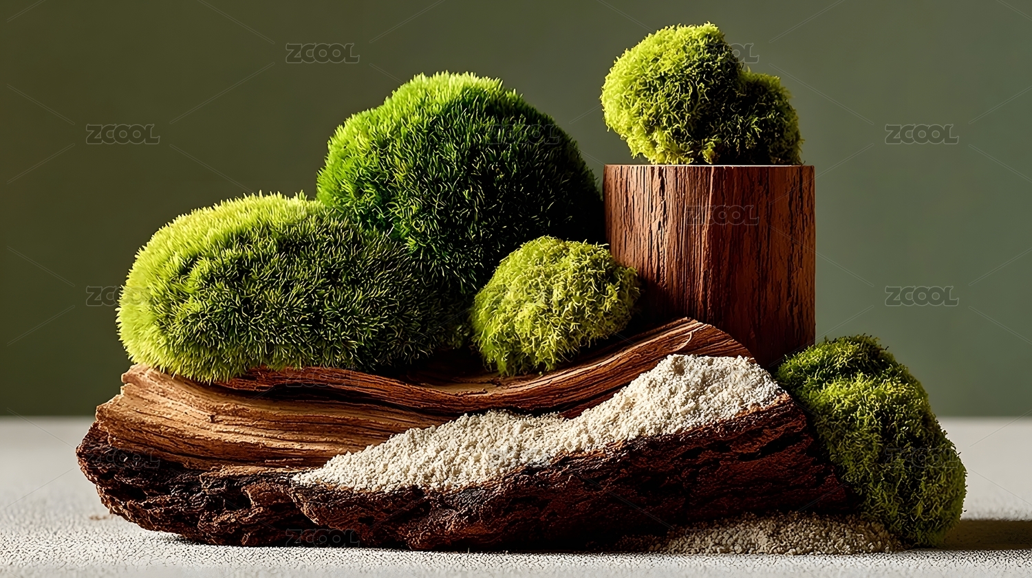 展台,树桩,植物,纹理,装饰,简约,切面,绿色,苔藓,景观