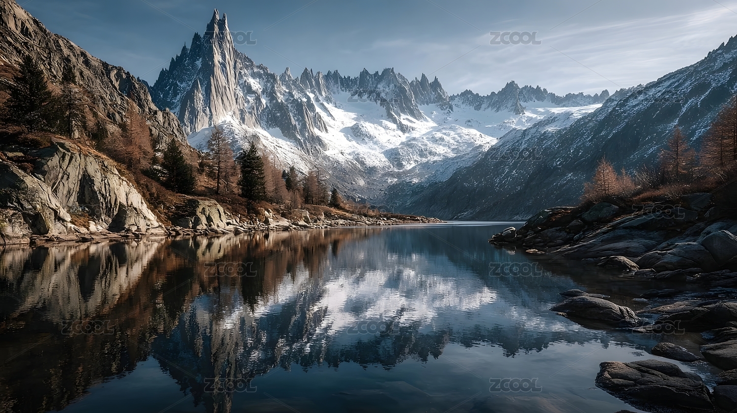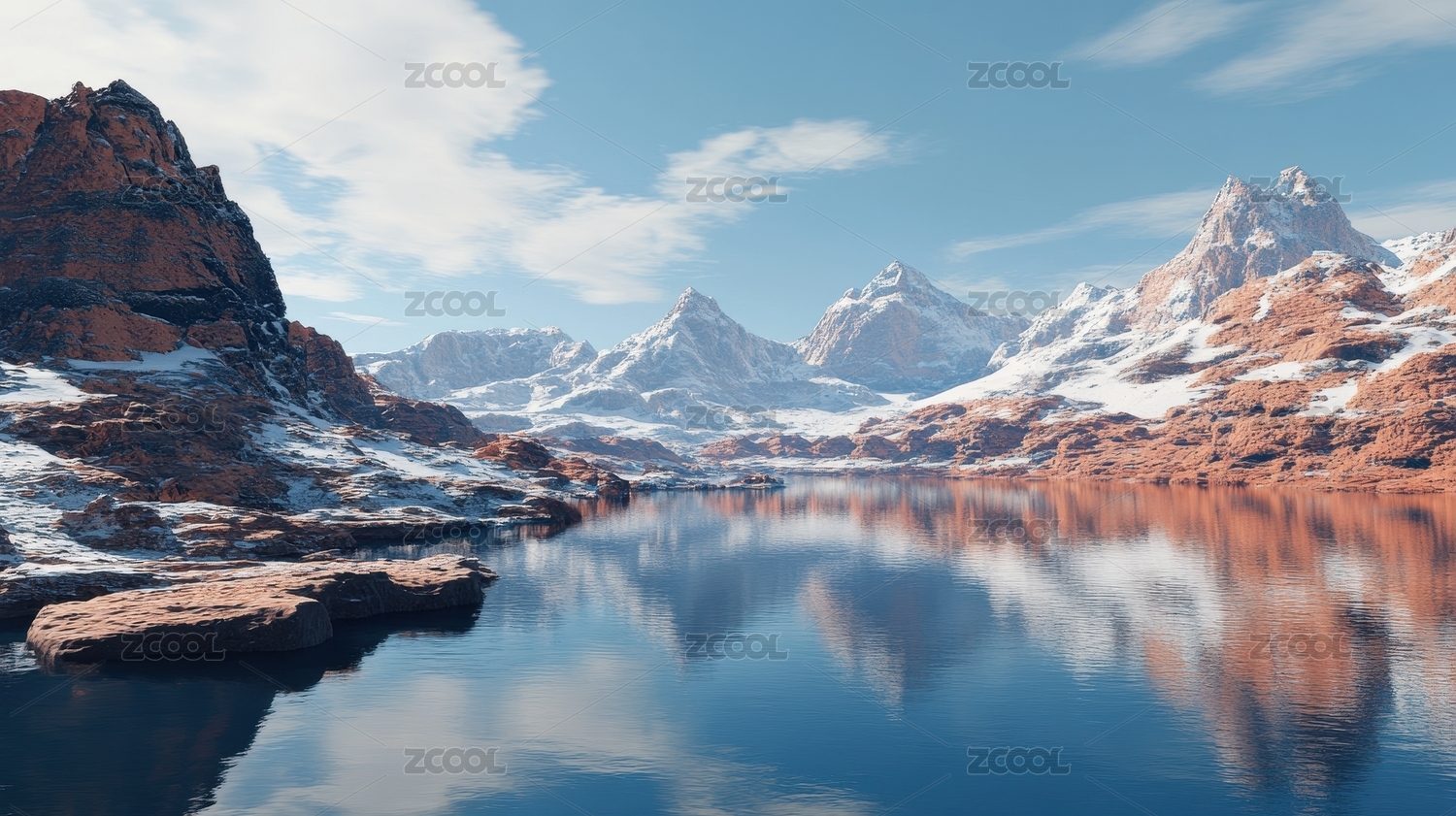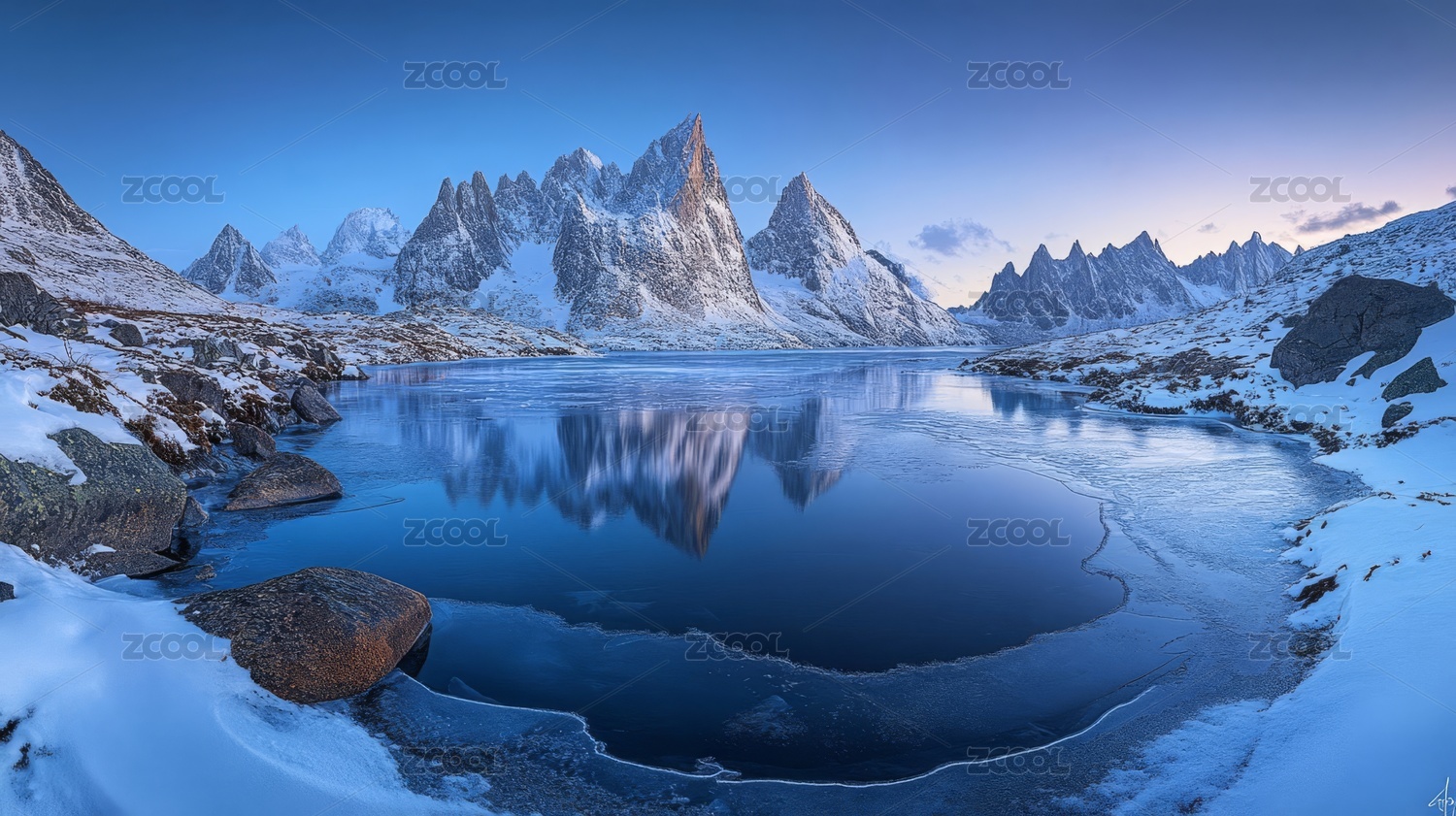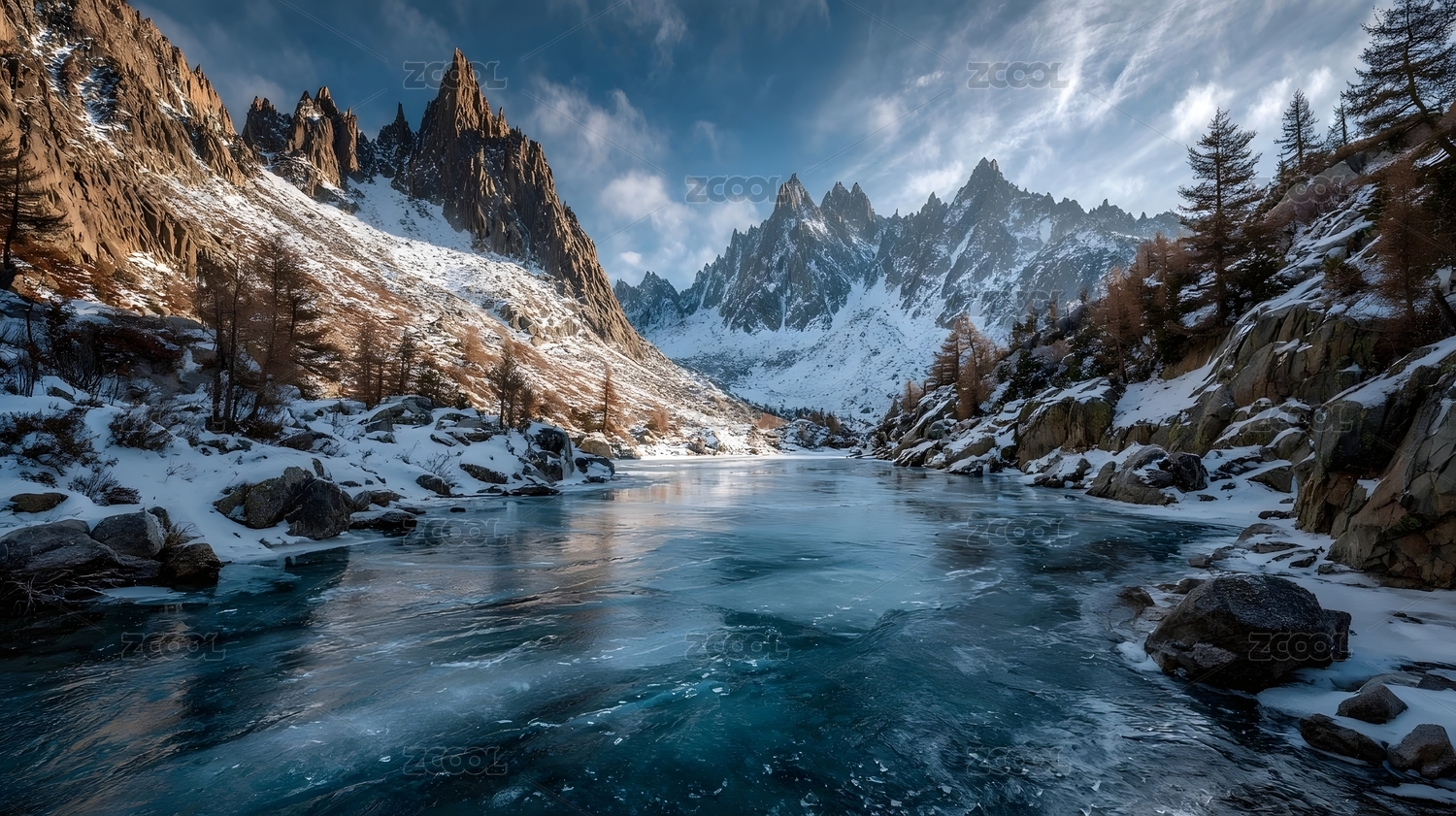 冬季冬天立冬户外风景,鸟瞰雪山与湖泊
