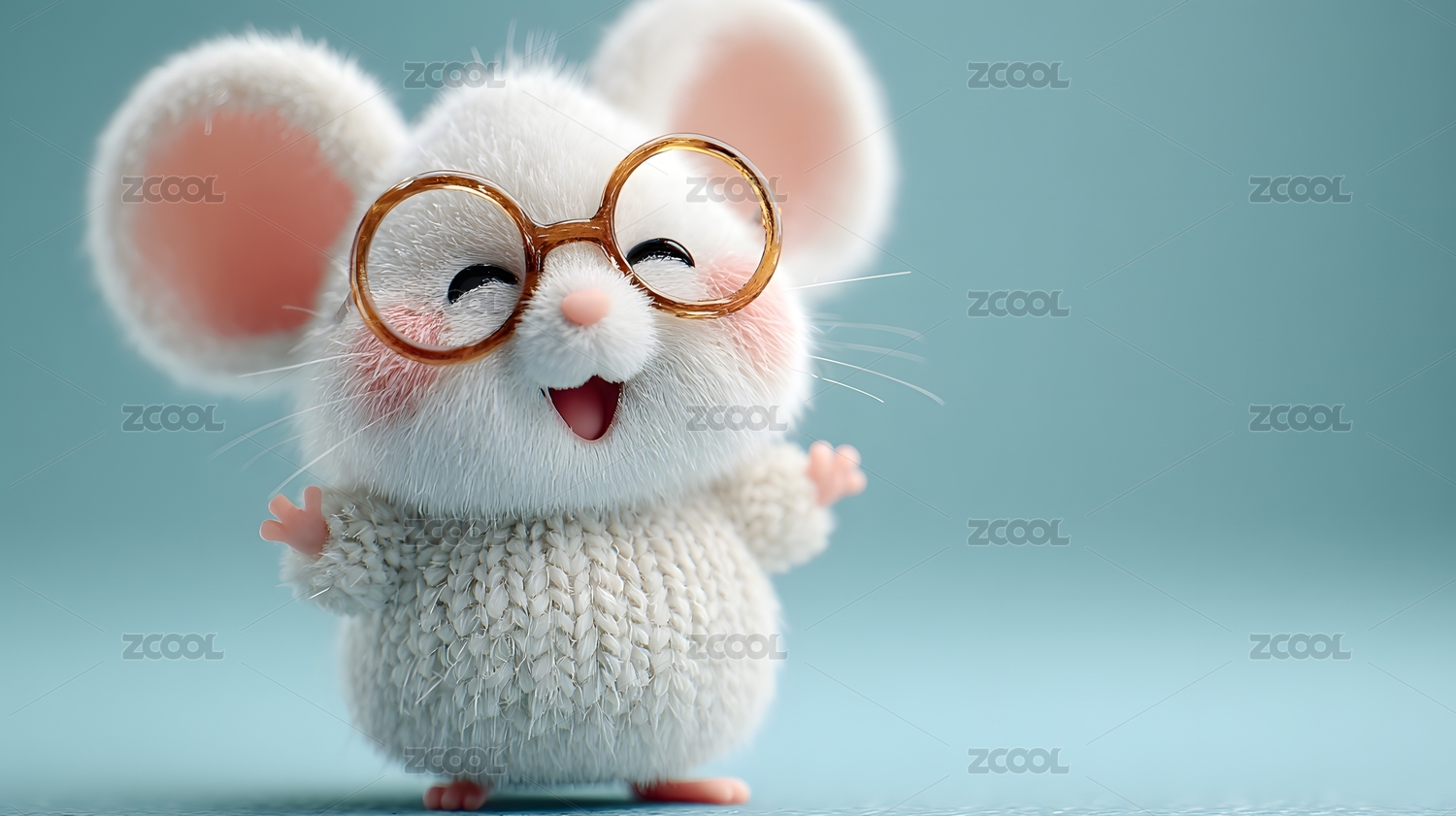 可爱毛茸茸小老鼠戴眼镜笑眯眯