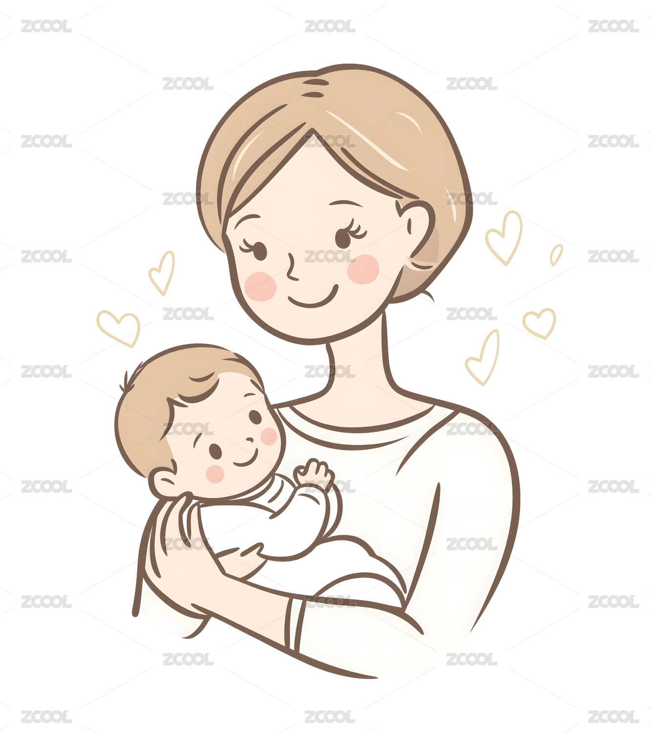 母亲抱着宝宝亲子插画
