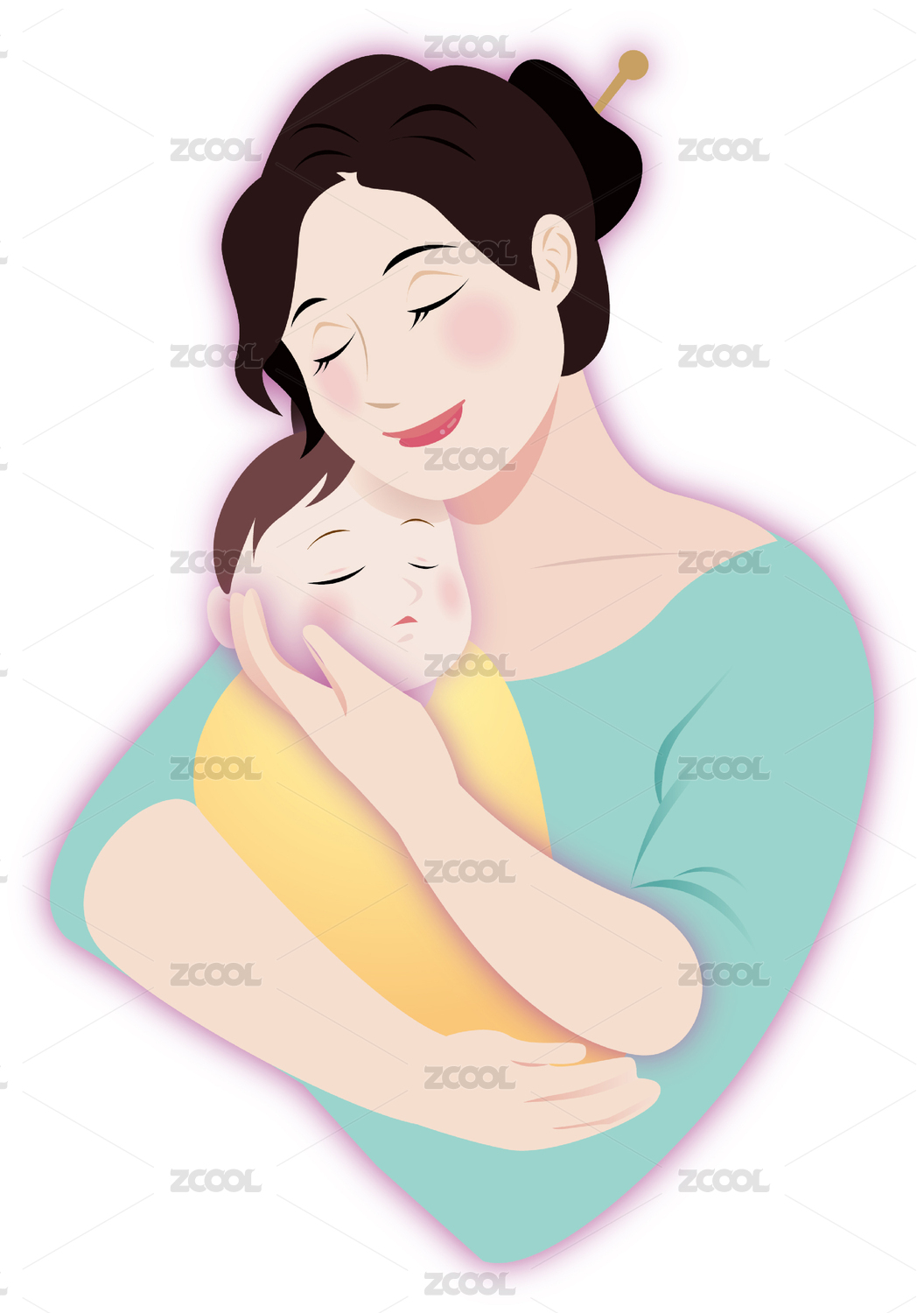 妈妈抱着宝宝插画