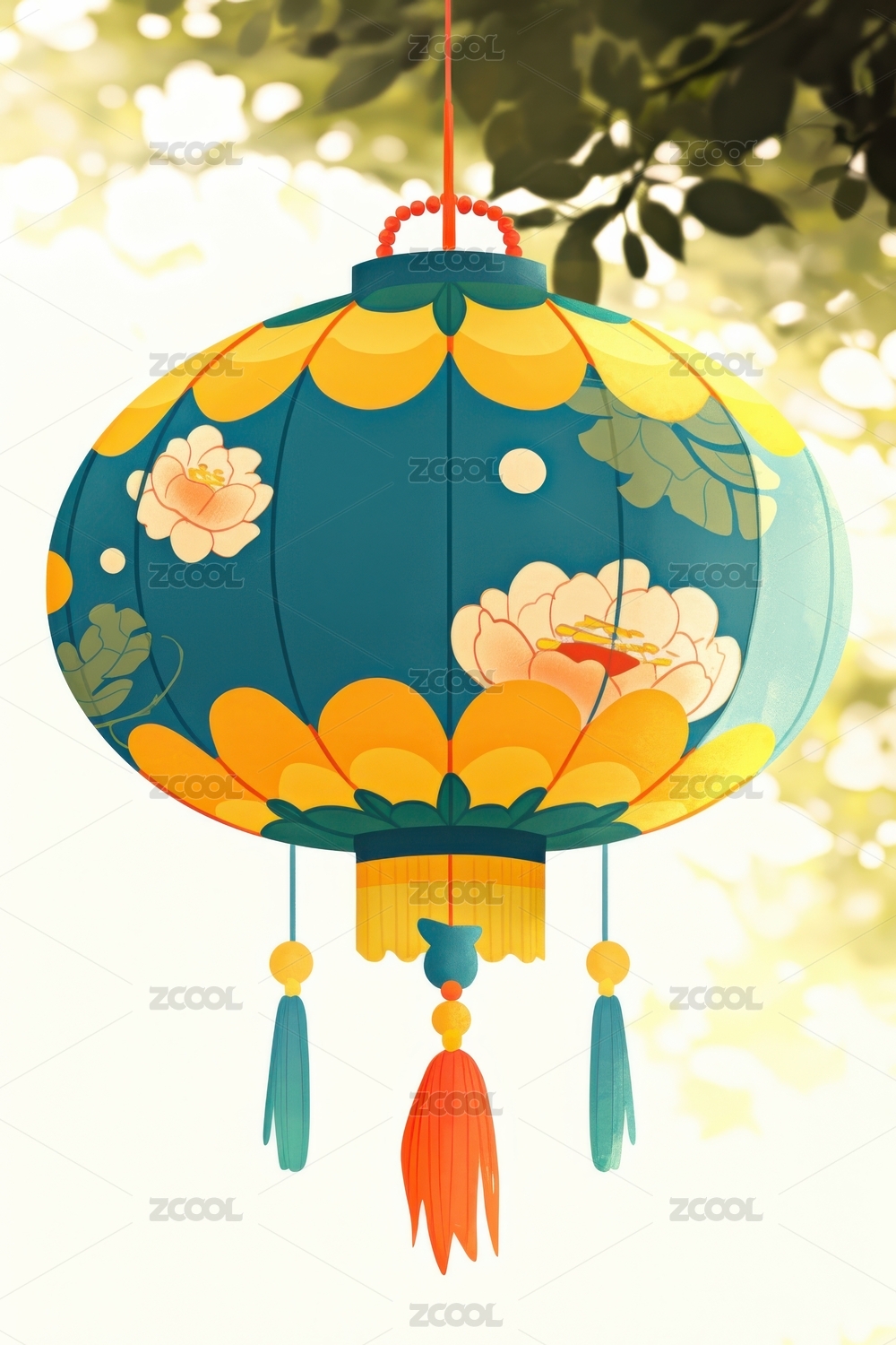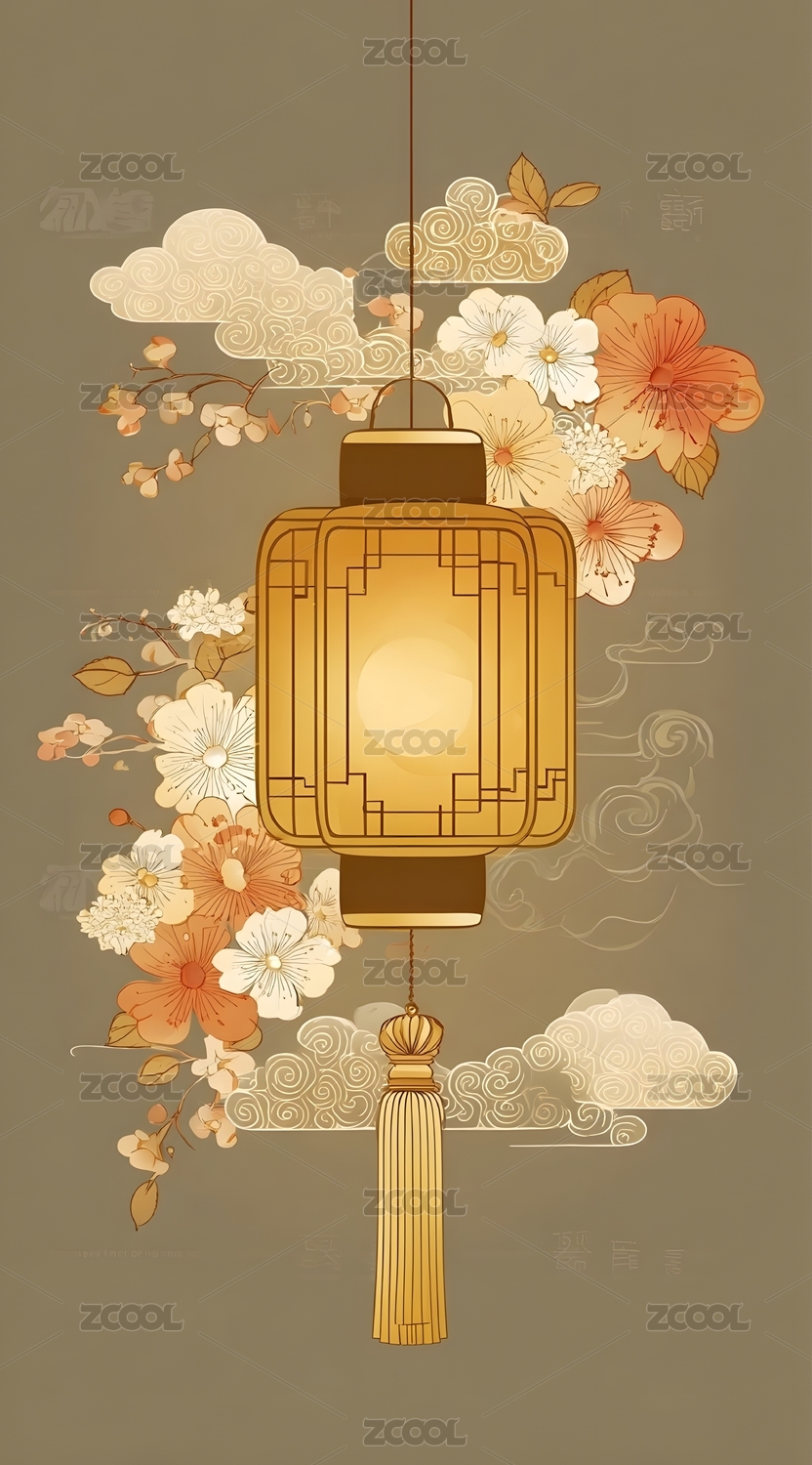 国风,花灯,繁花,古韵,诗意,传统,灯笼,花朵,云朵,中式