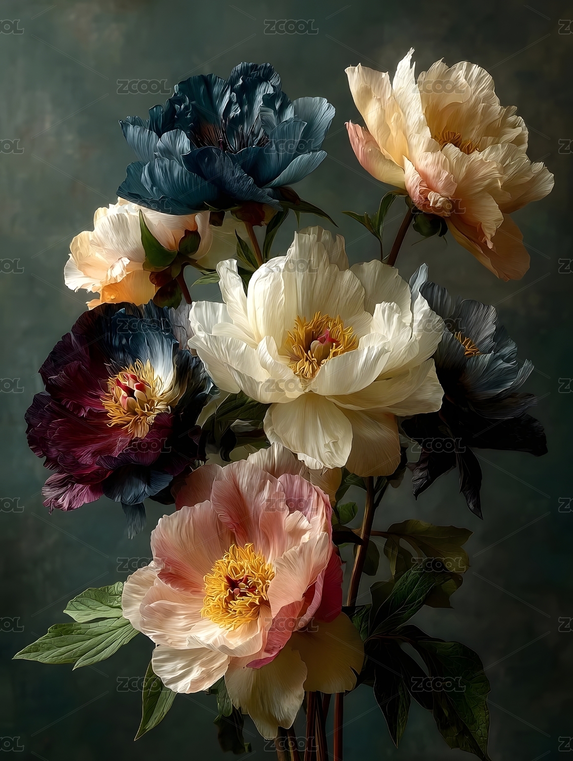 牡丹花束优雅绽放