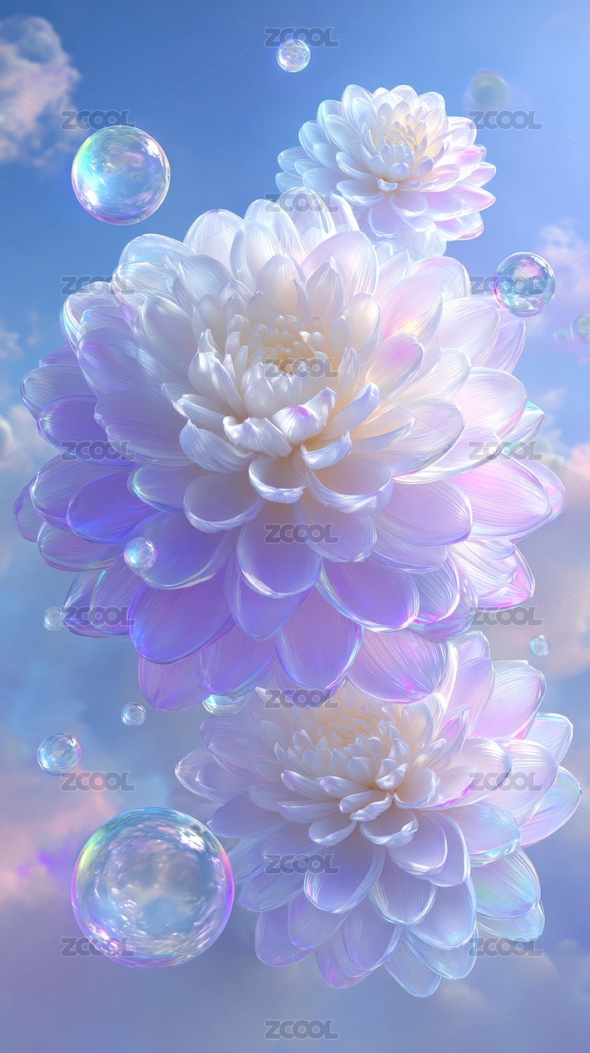 梦幻花卉与泡泡的天空