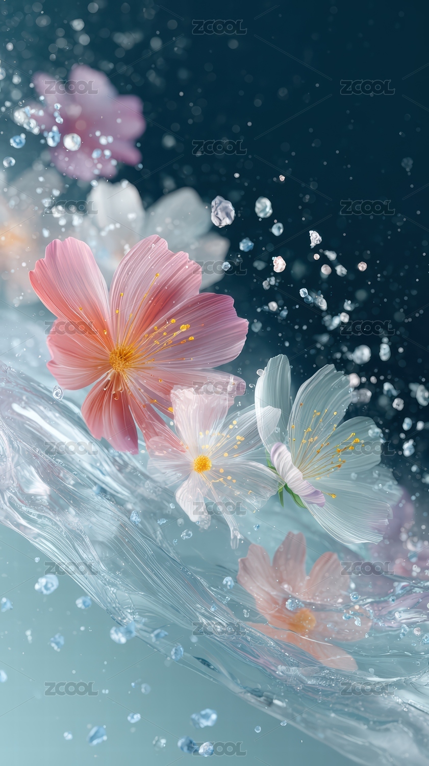数码科技彩色玻璃花朵植物花园抽象海报背景
