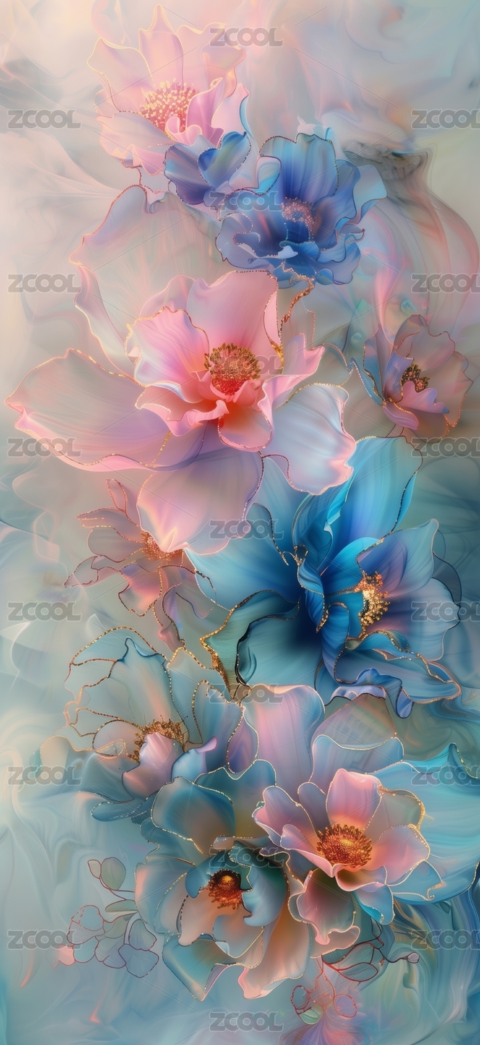 彩花,绽,清辉,柔云,缠韵,绮梦,彩色,花朵,云朵,梦幻