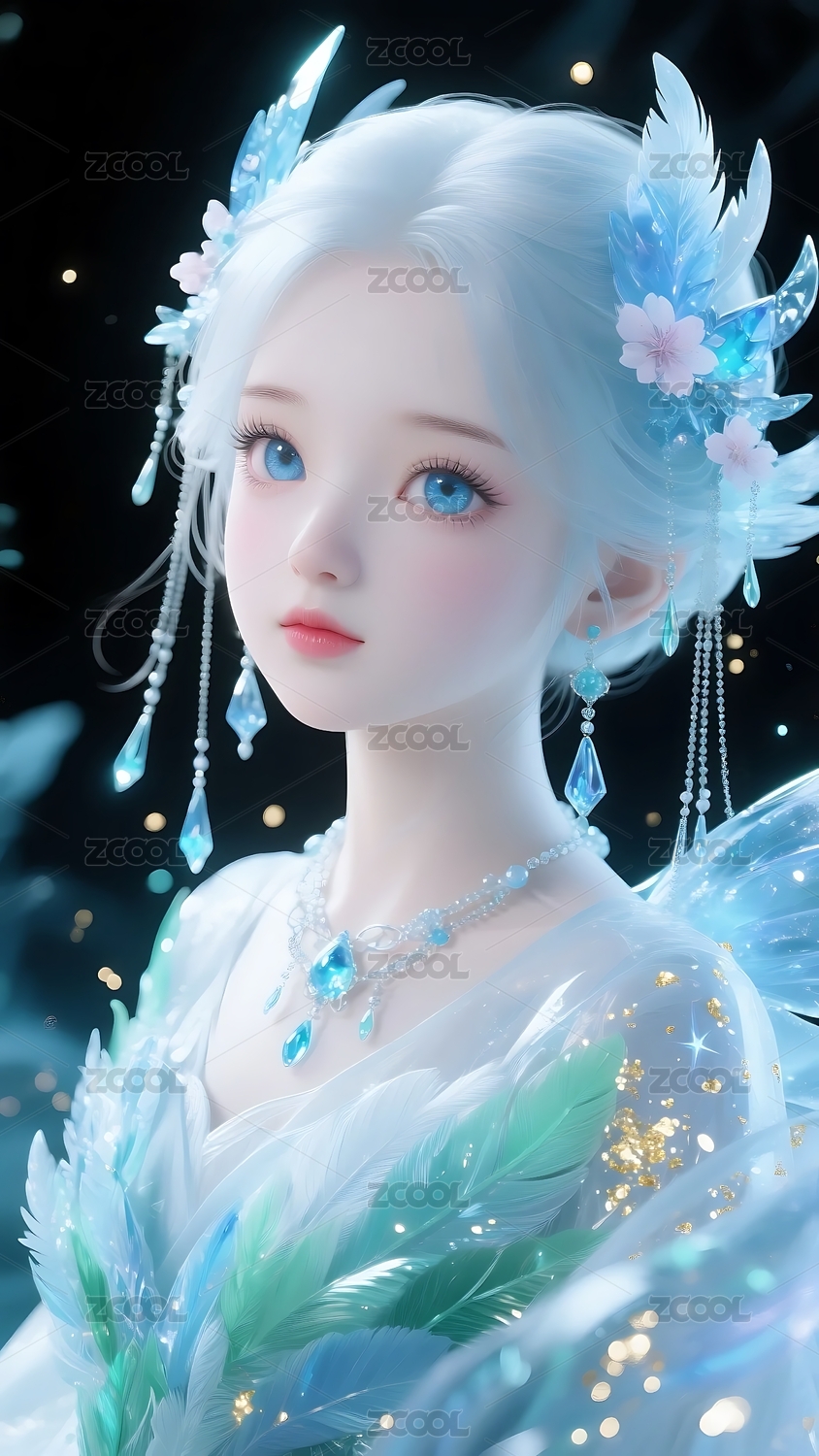 古风,人偶,银发,头饰,珠宝,精致妆容,女孩,蛇,银色