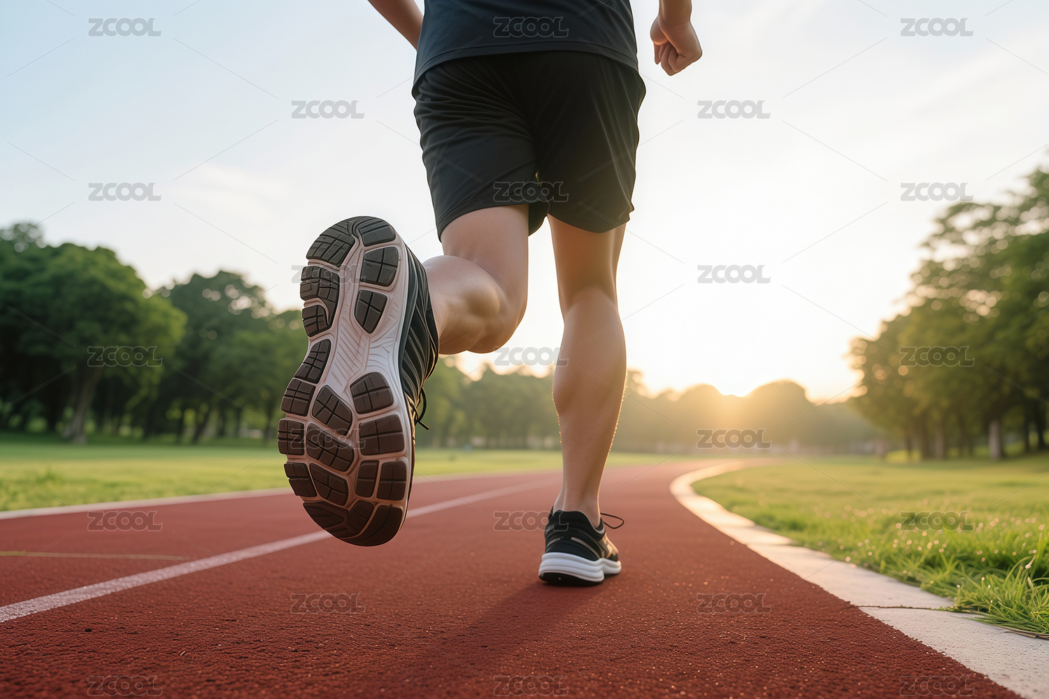 逆光跑步的步伐清晰的鞋底健壮的亚洲男性腿