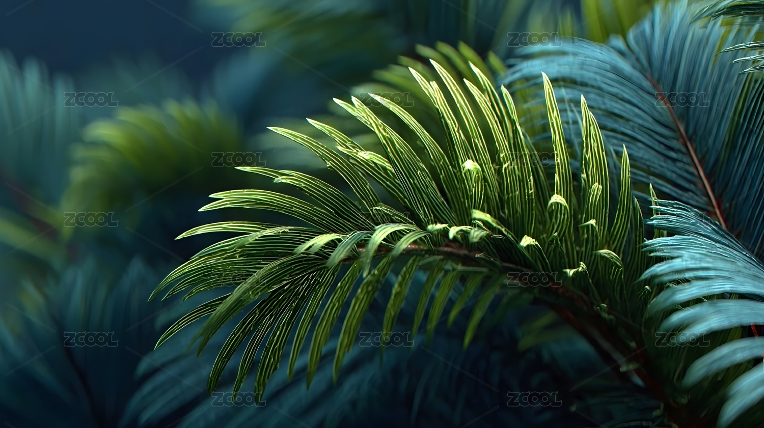 嫩绿色的铁树叶暗调静物照