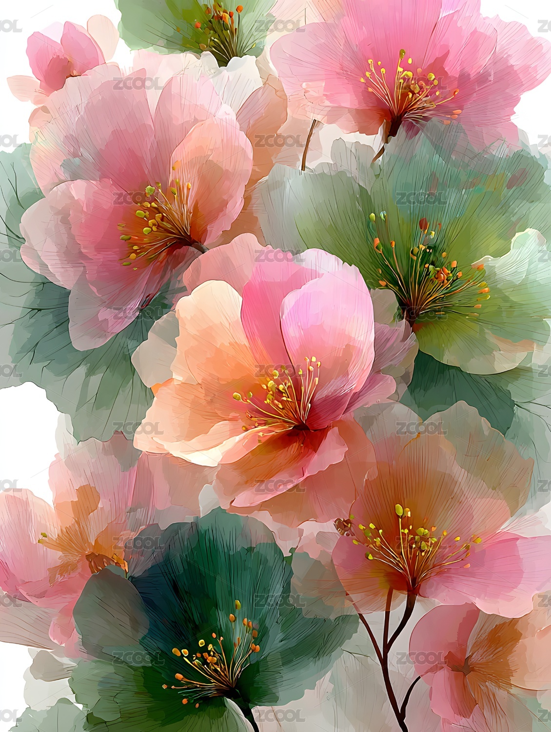 自然,绿色,渐变,艺术,图案,花朵,花瓣,花蕊,水彩,植物