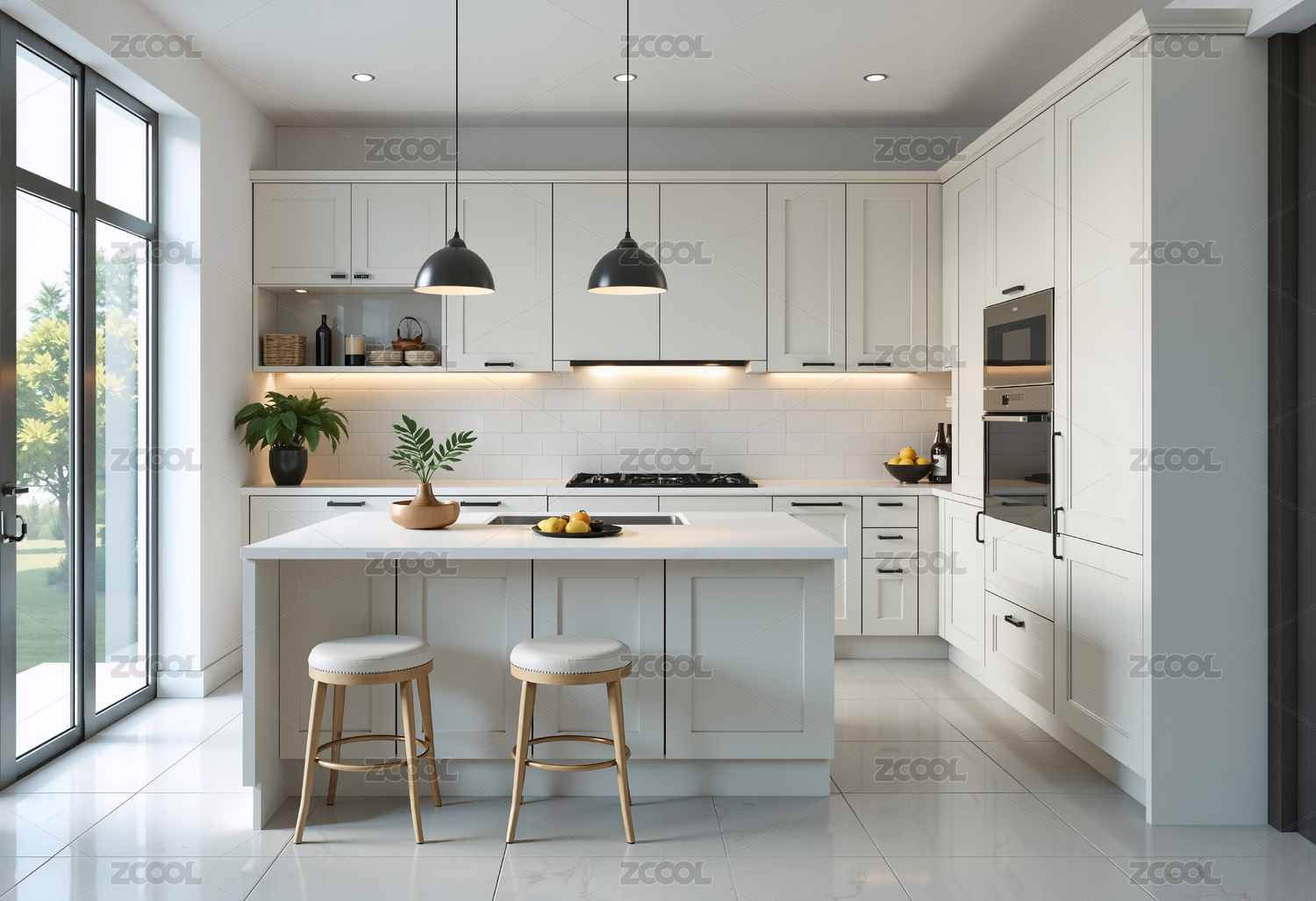 现代风格白色厨房室内景