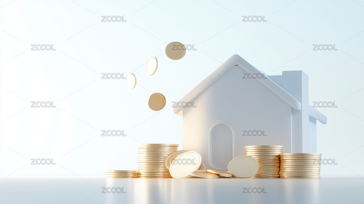 房屋模型与金币堆叠象征财富