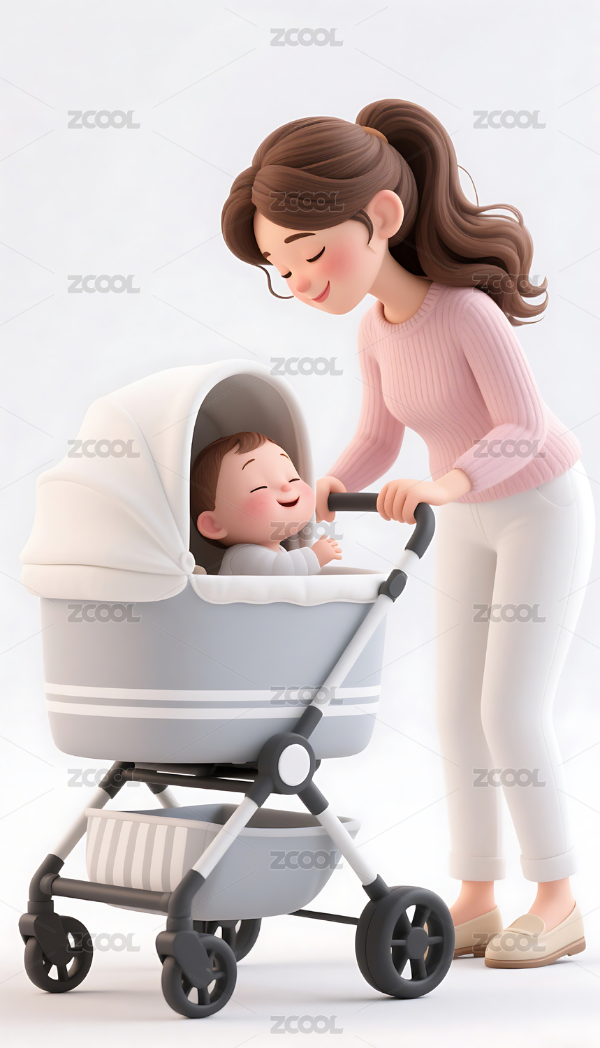 3D母亲推着婴儿车模型背景