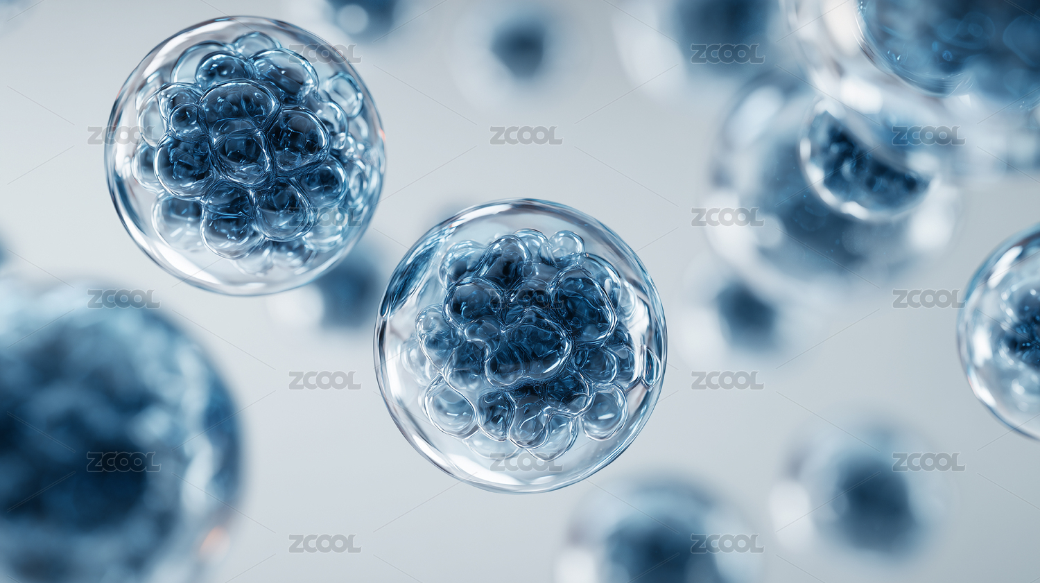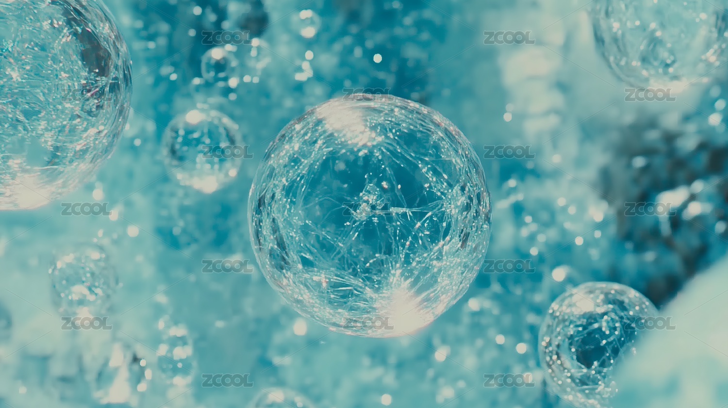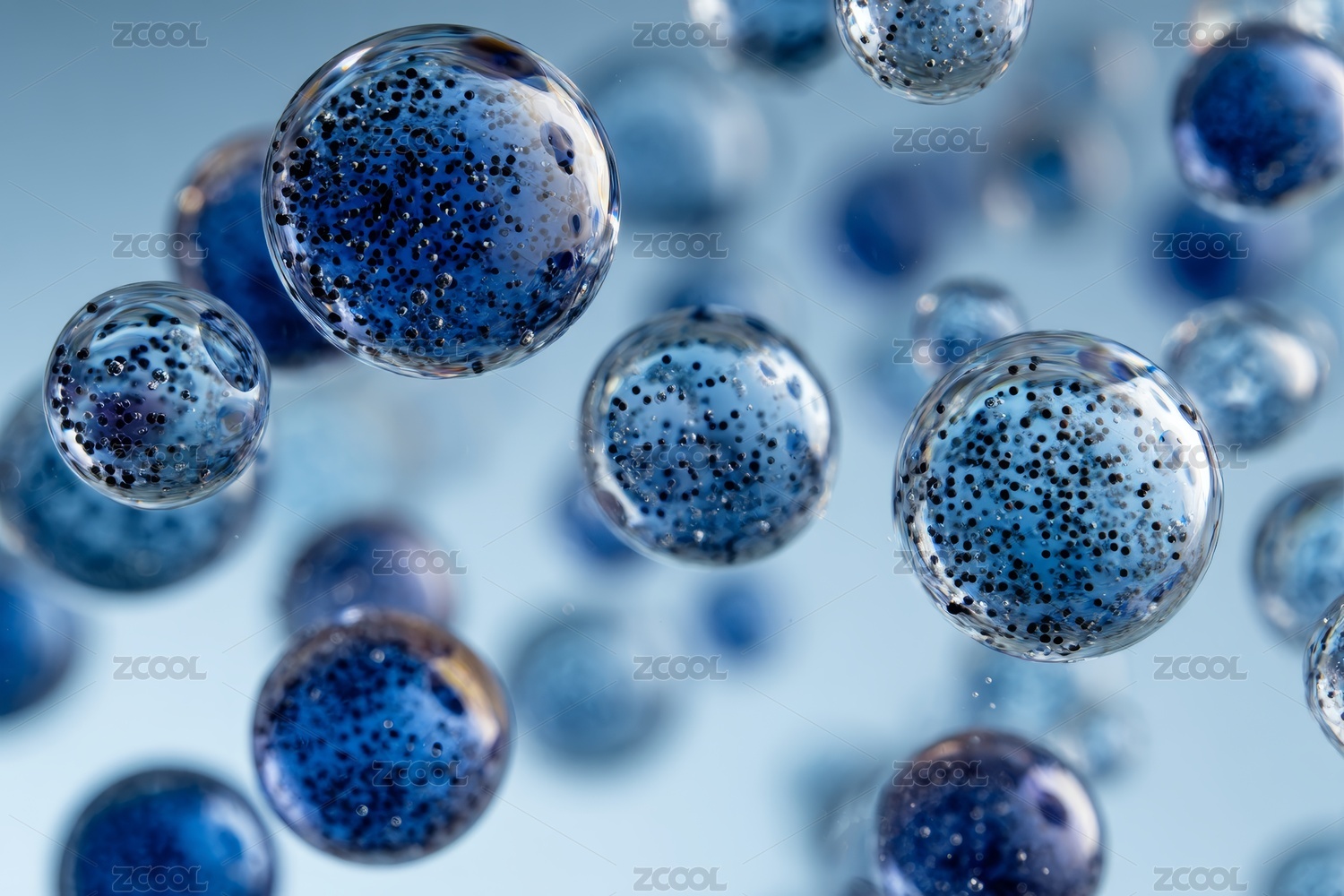 透明气泡中悬浮蓝色液滴的微观视觉效果