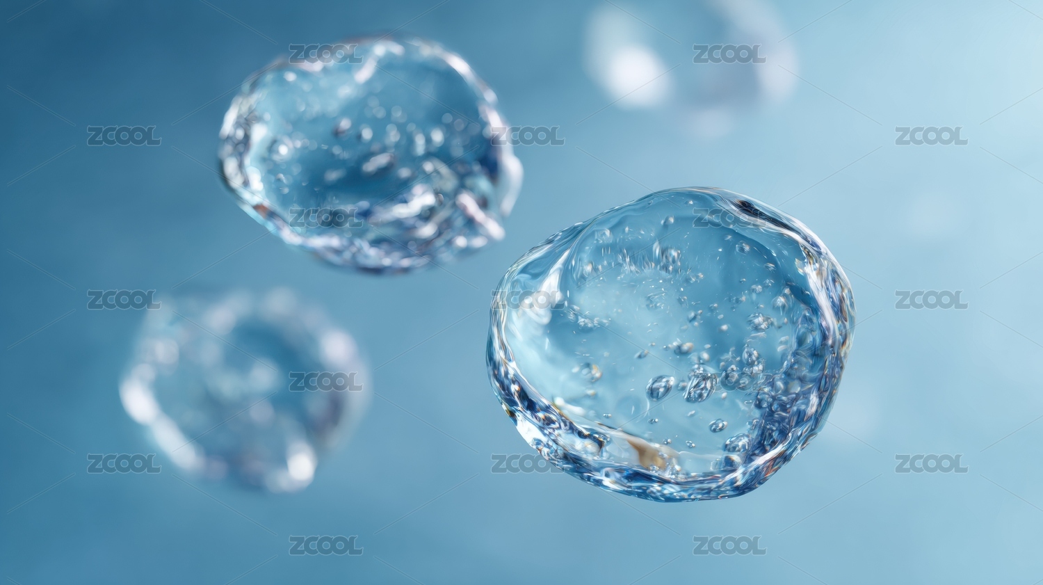 蓝色,水滴,漂浮,场景,浅蓝,背景,对比,柔和,视觉,效果