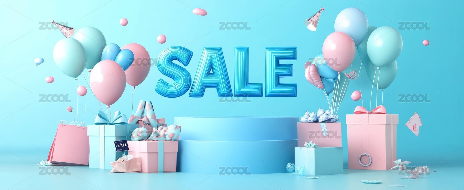 蓝色背景促销活动场景