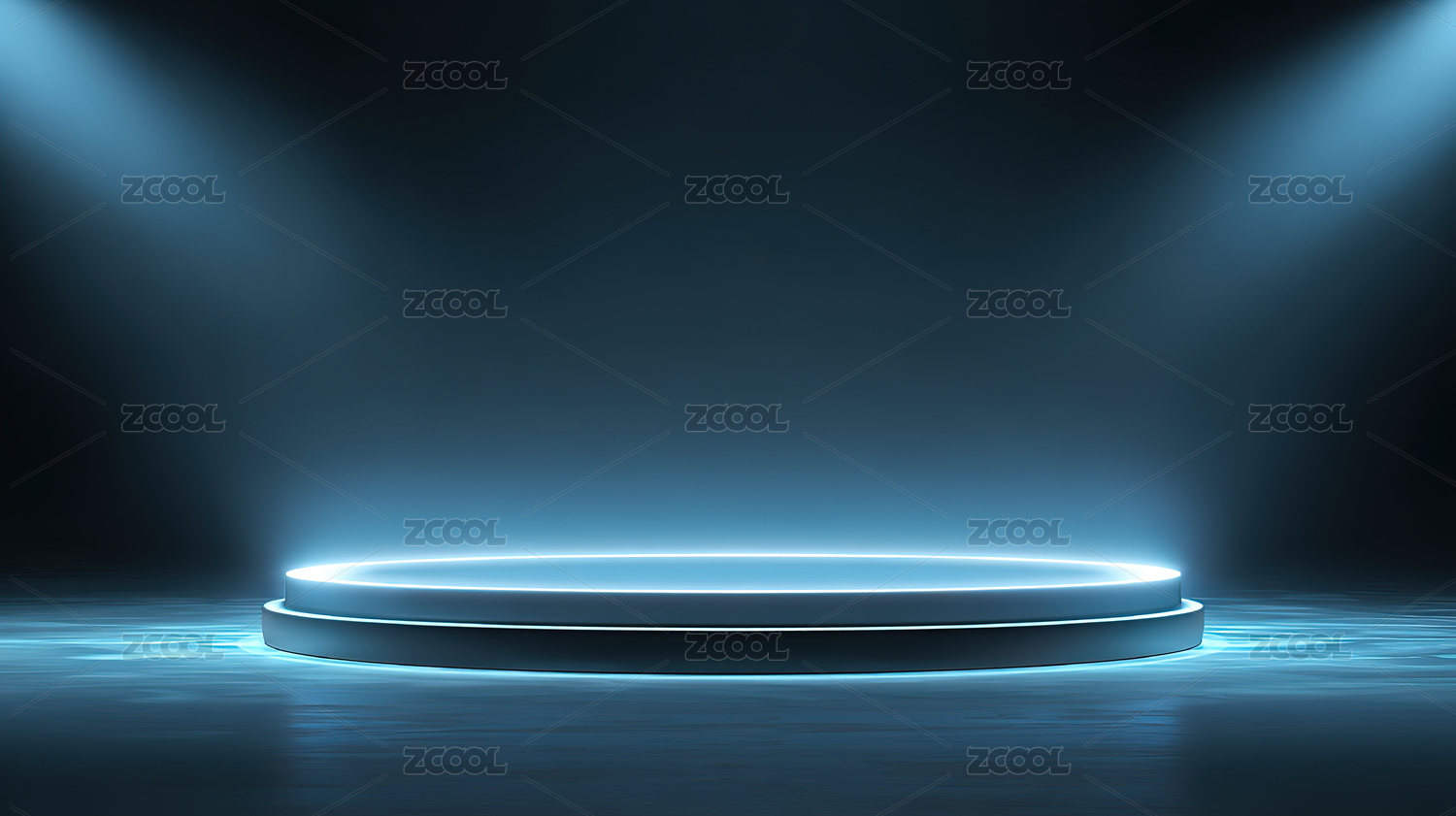科幻风,蓝色,光影,平台,圆形,能量,涌动,背景,黑色,对比