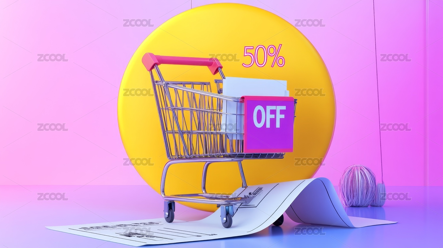 购物车,内置,黄色,五折,标签,促销,折扣,优惠,购物,消费