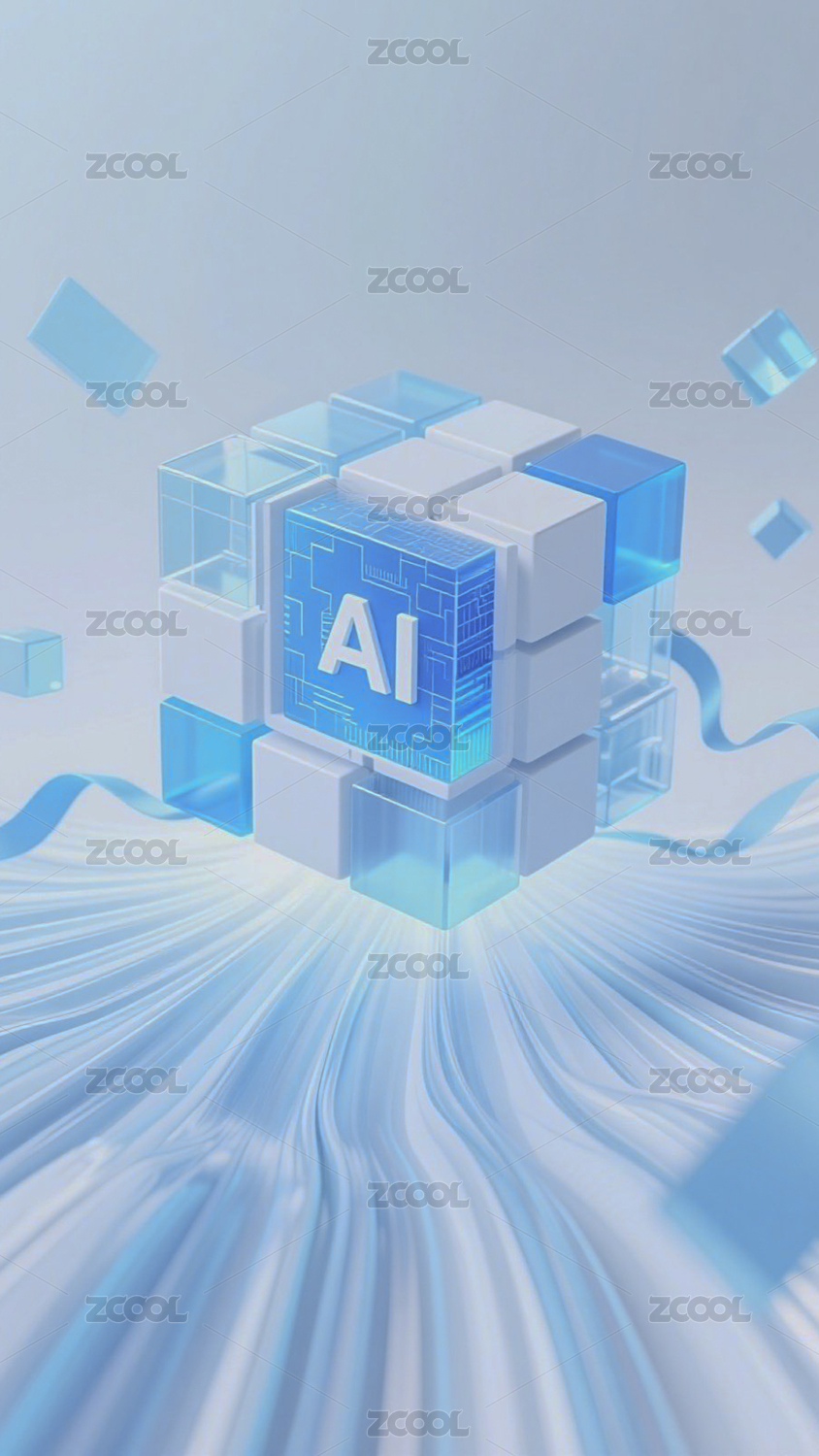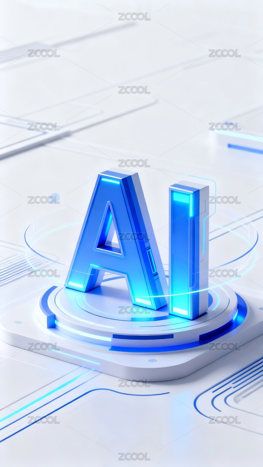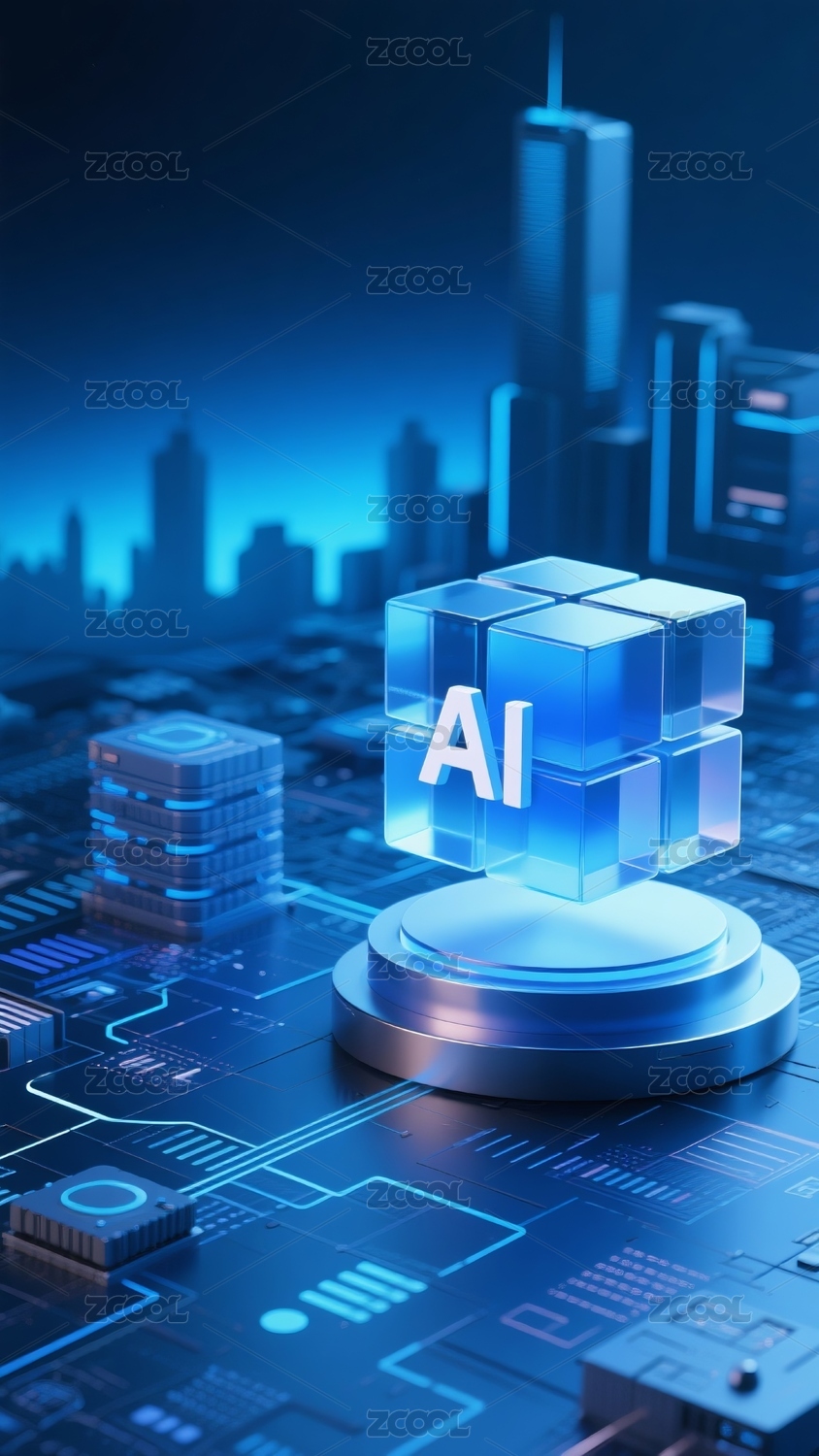 AI,图标,插画,扁平,水晶,透明,蓝色,人工智能,文字,数字