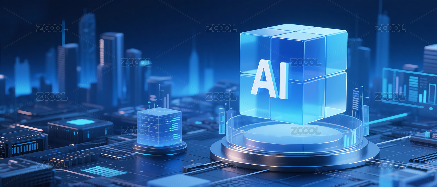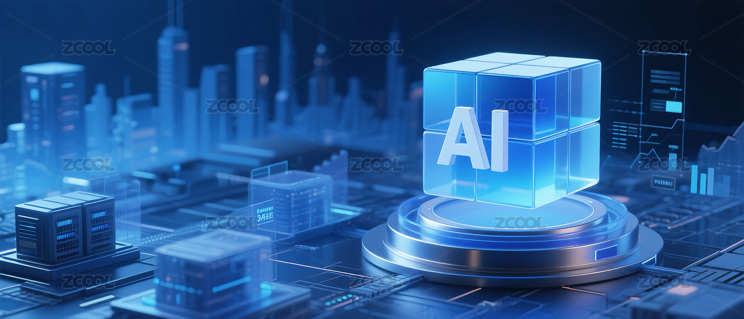 AI,图标,插画,扁平,水晶,透明,蓝色,人工智能,文字,数字