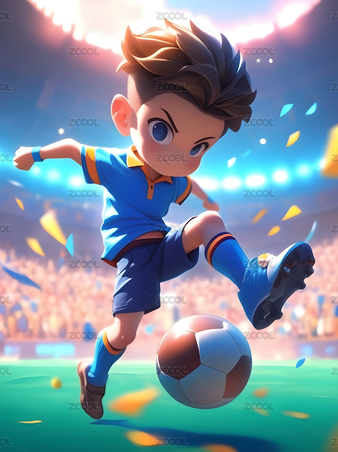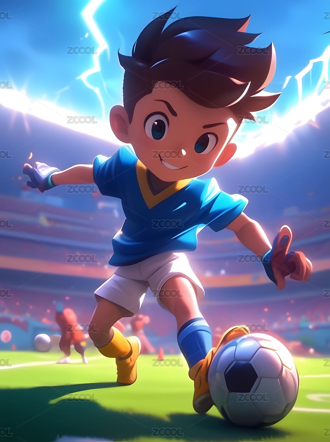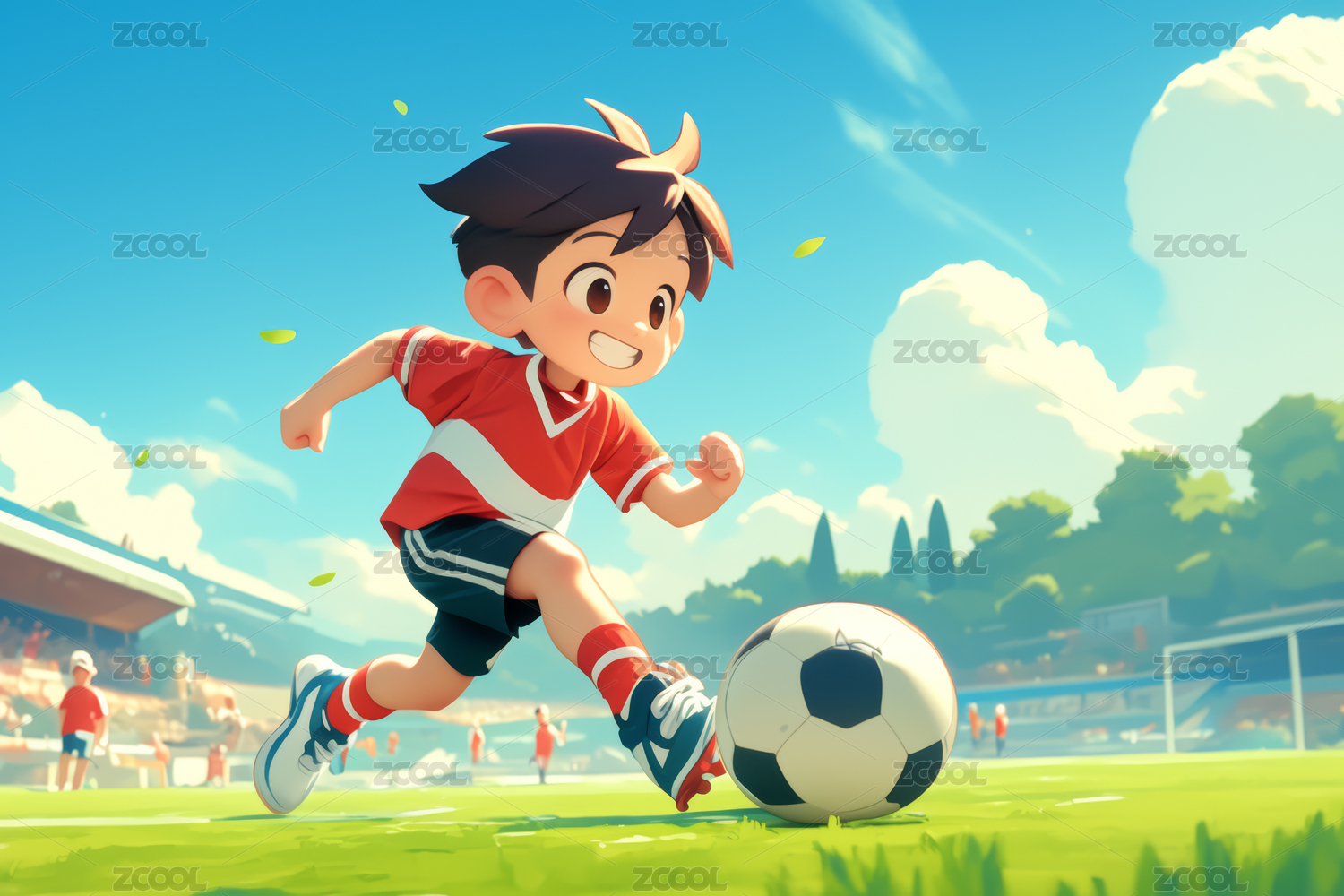 几个可爱的穿运动服的男孩在足球场上踢足球